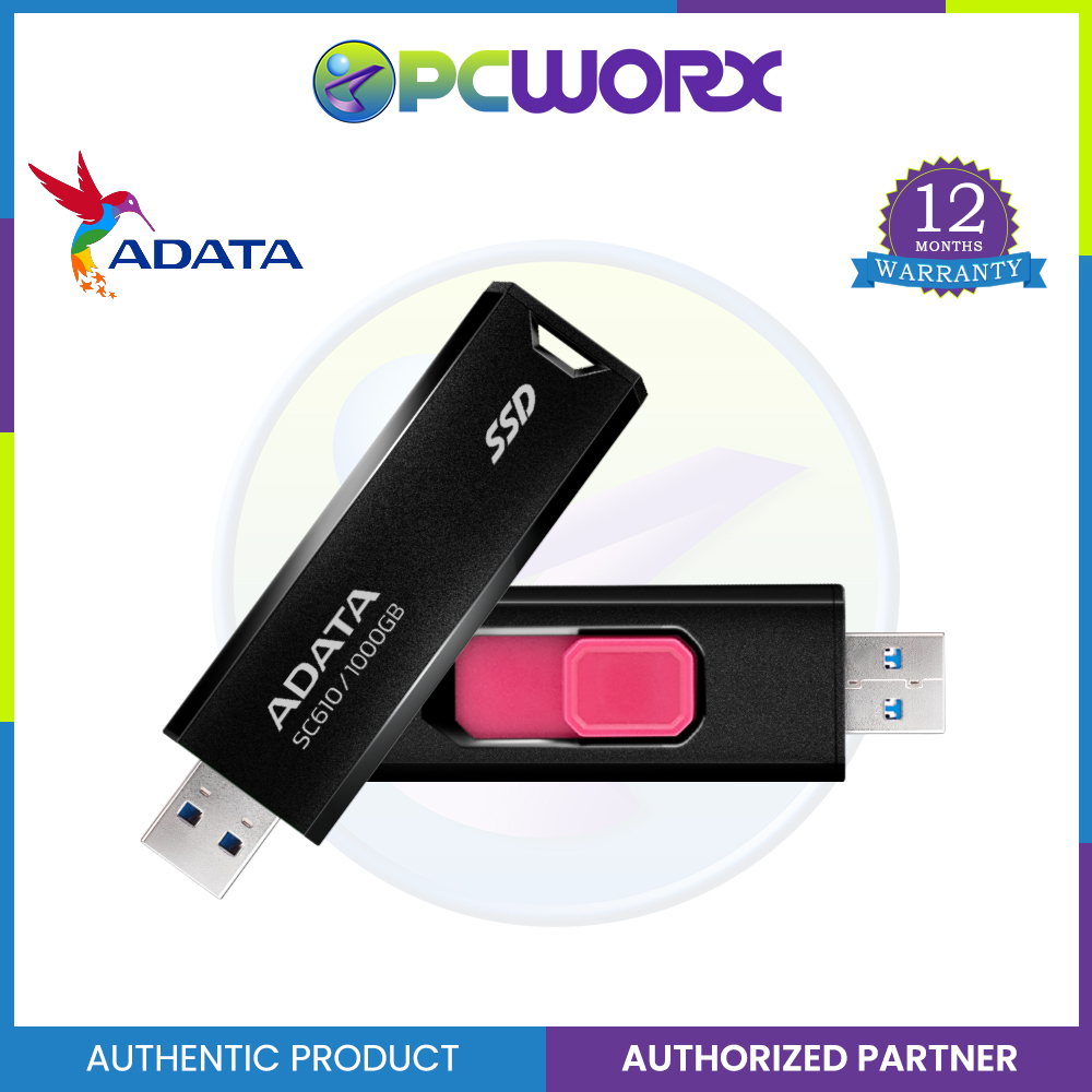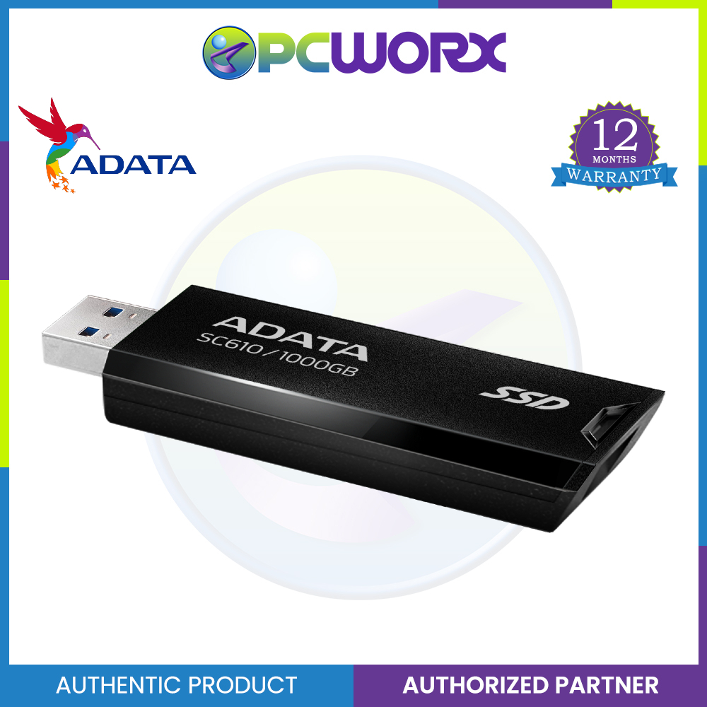 Adata SC610 1TB/2TB External SSD Stick, SuperSpeed USB 3.2 Gen 2 USB-A Solid State Flash
