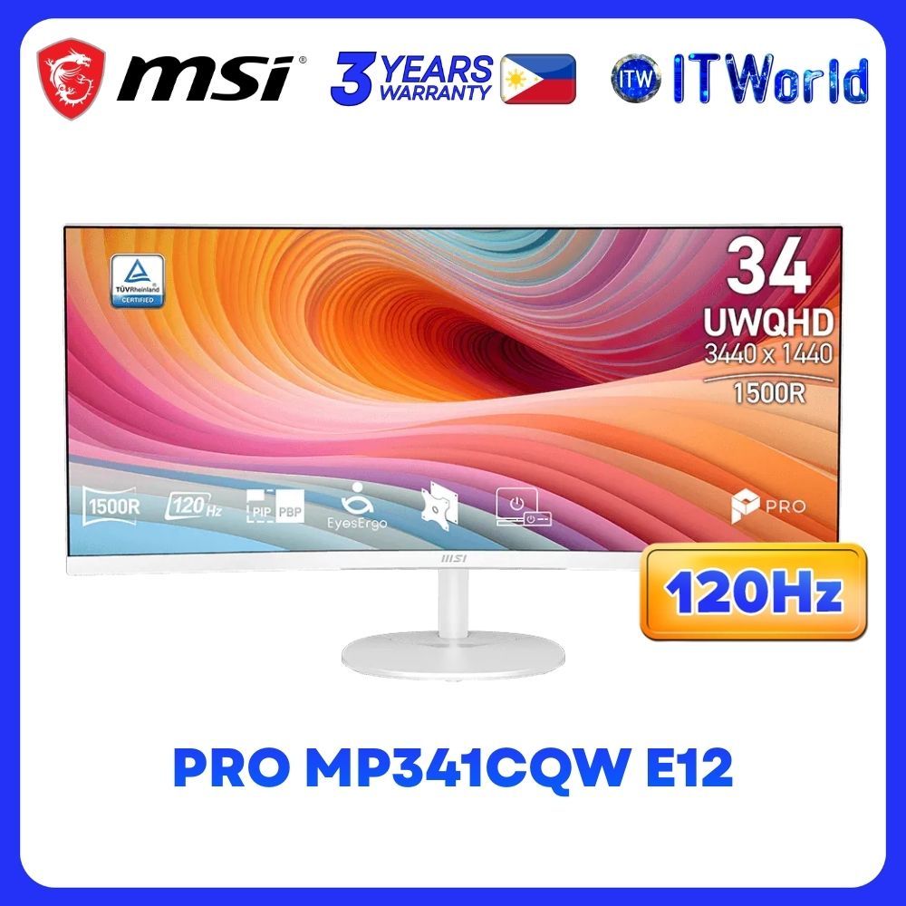 MSI PRO MP341CQW E12 - 34" 3440×1440 UWQHD Curved Monitor 120Hz VA 1ms MPRT HDR Ready Adaptive-Sync