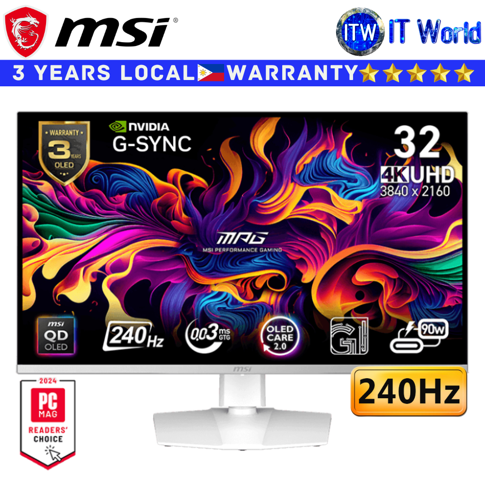 MSI Gaming Monitor MPG 321URXW QD-OLED 31.5" 3840x2160 UHD / 240Hz / QD-OLED / 0.03ms GTG | itw