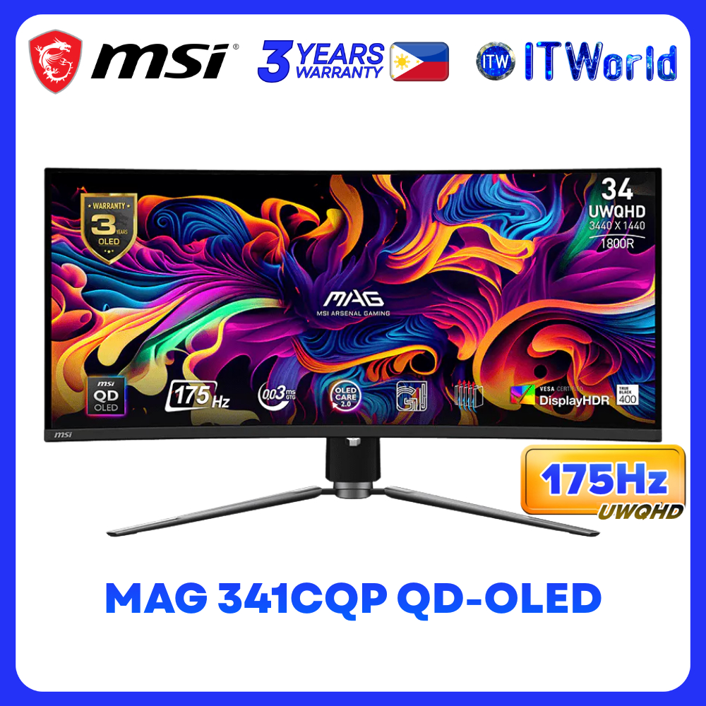 MSI MAG 341CQP QD-OLED 34" 3440x1440 (UWQHD) 175Hz 0.03ms Curved Gaming Monitor itw