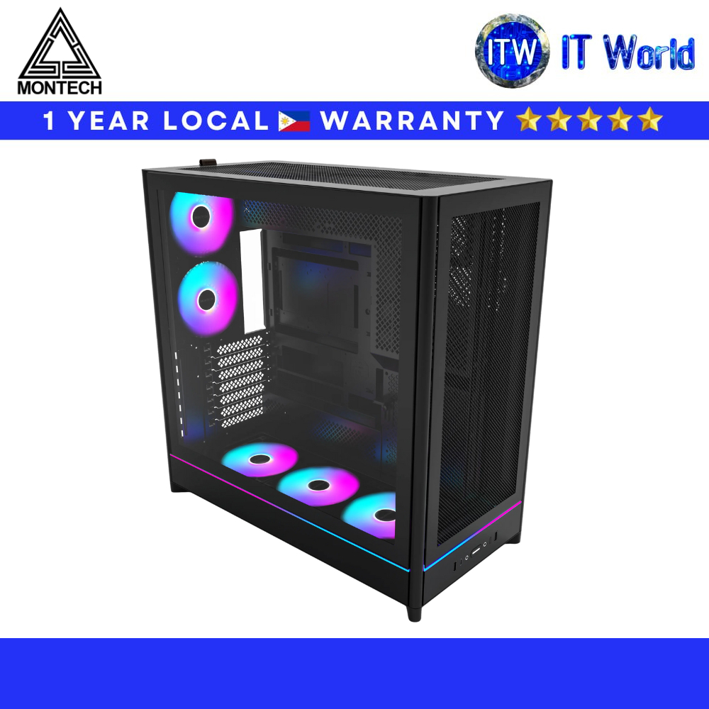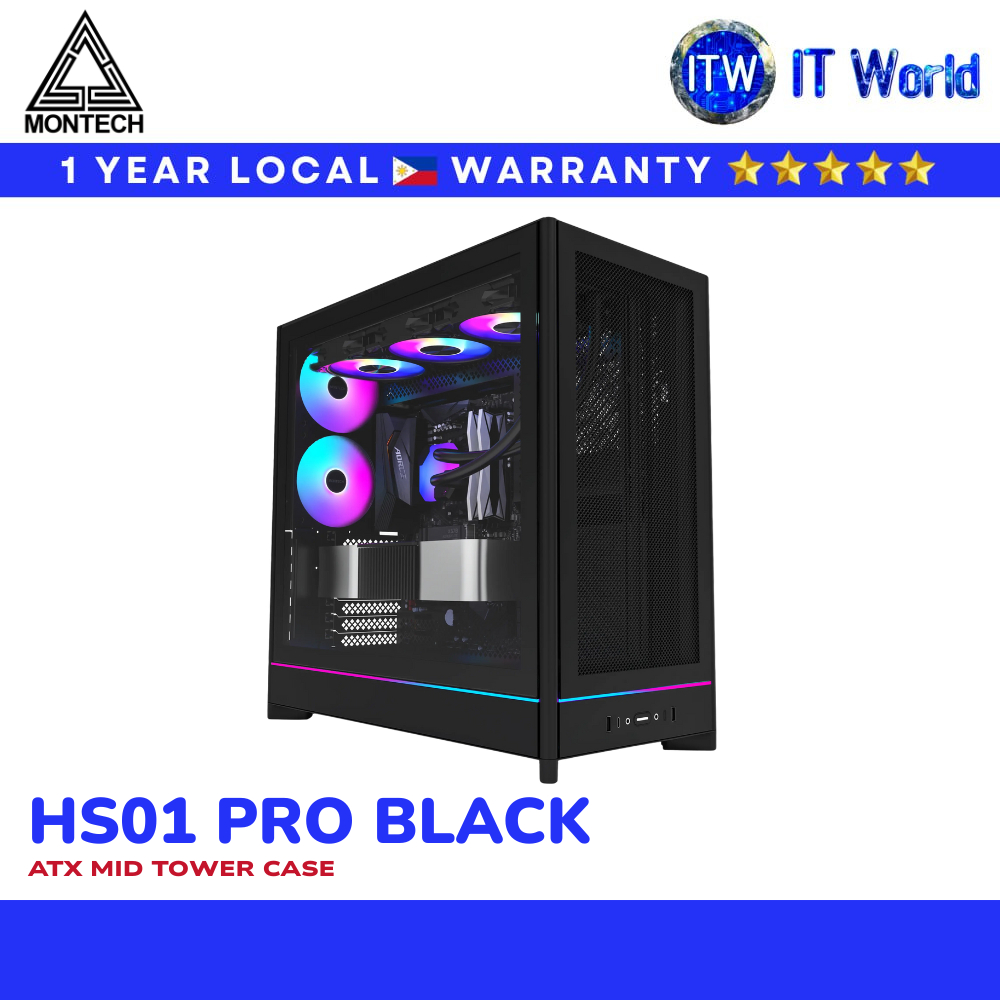 Montech HS01 Pro ATX Mid-Tower High-Airflow Reversible Layout PC Case (Black) | itw