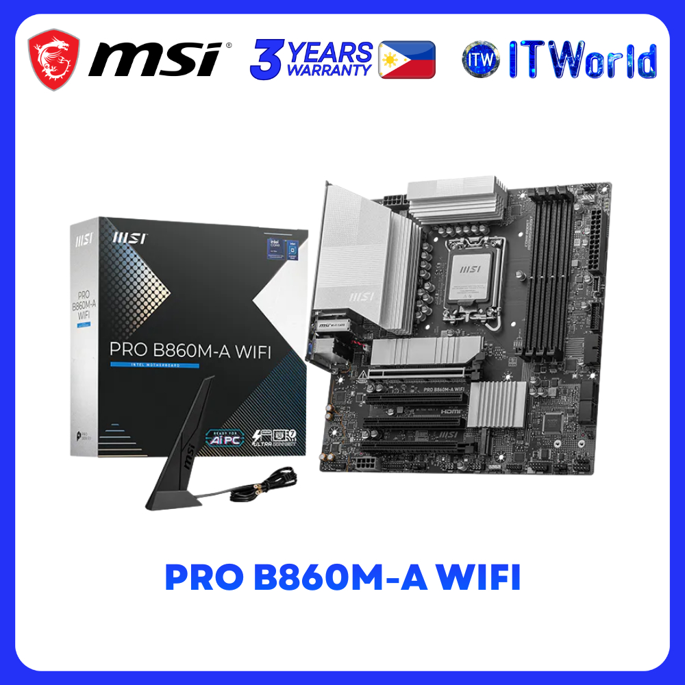 MSI PRO B860M-A WIFI mATX LGA1851 DDR5 PCIe 5.0 M.2 Wi-Fi 7 5G LAN Thunderbolt 4 Motherboard itw