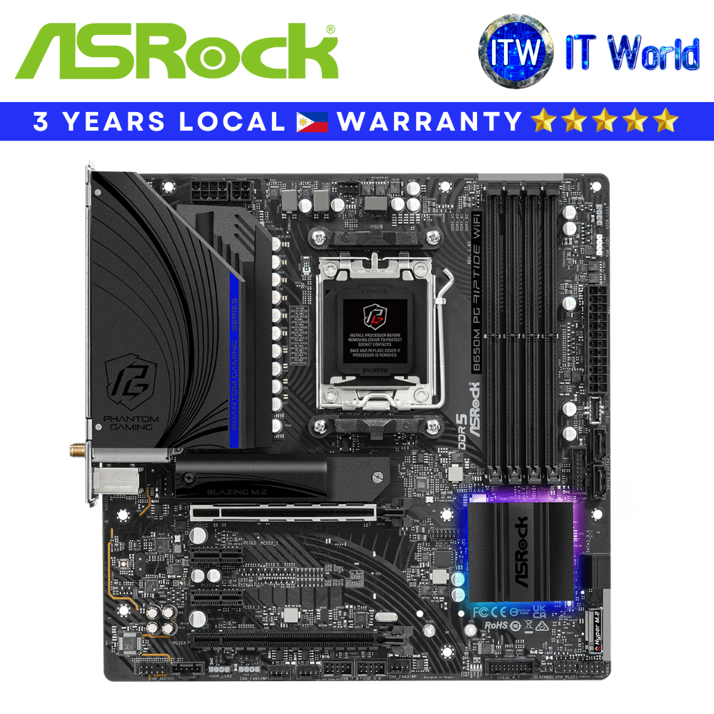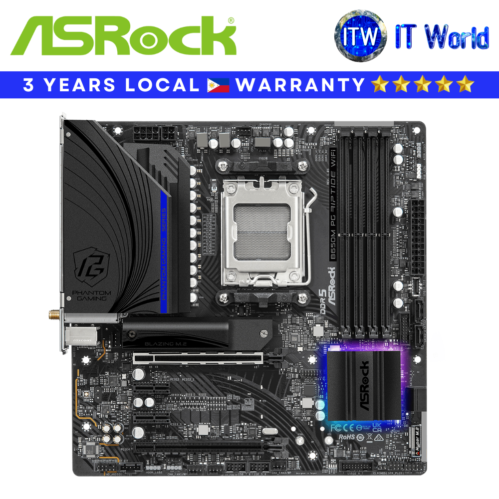 Itw | ASRock Motherboard B650M PG Riptide WiFi mATX - DDR5 | AM5 | PCIe Gen5 | WiFi 6E | 2.5G LAN