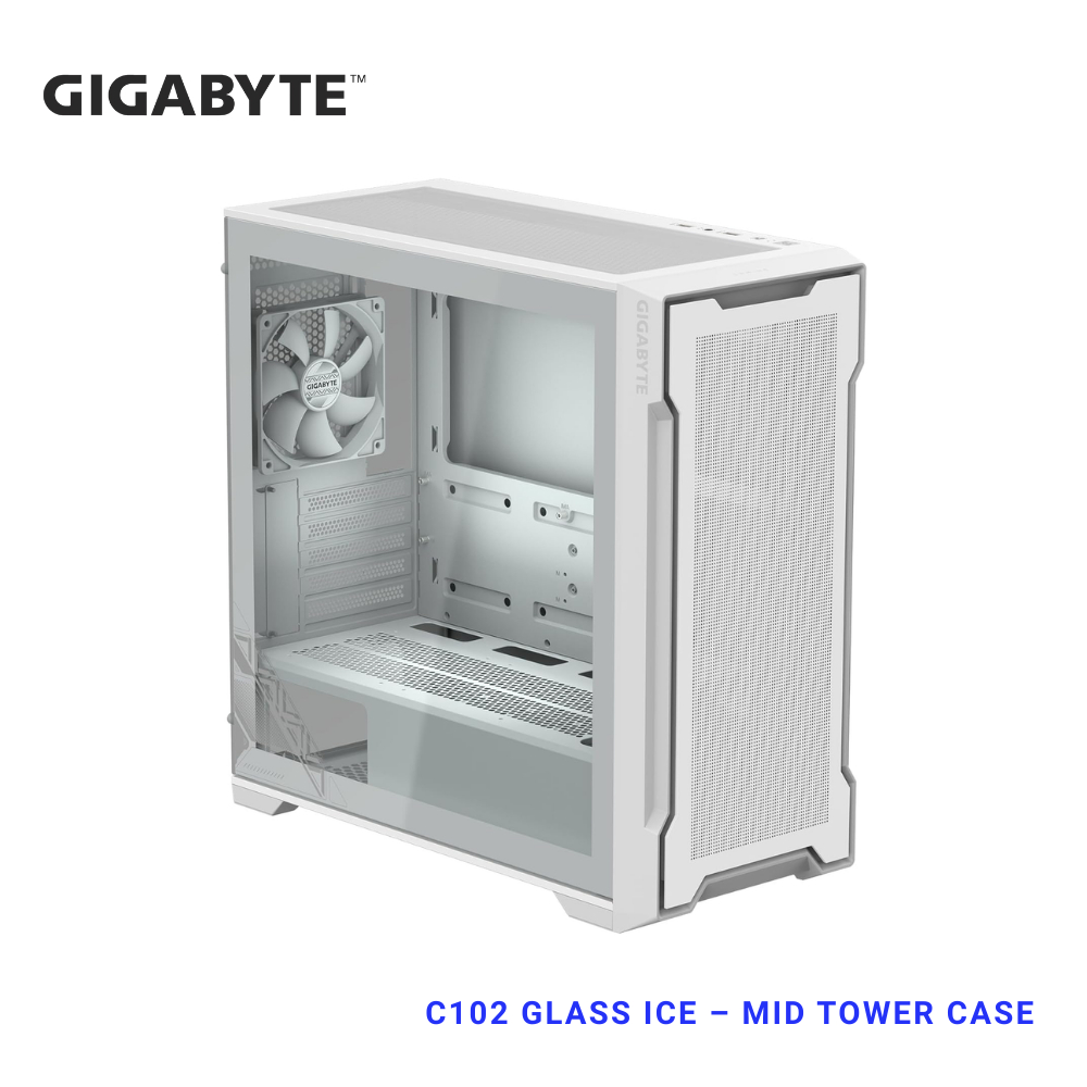 Gigabyte C102 Glass Ice - Mid Tower Tempered Glass / 2x120mm Fans PC Case - White GP-C102GI itw