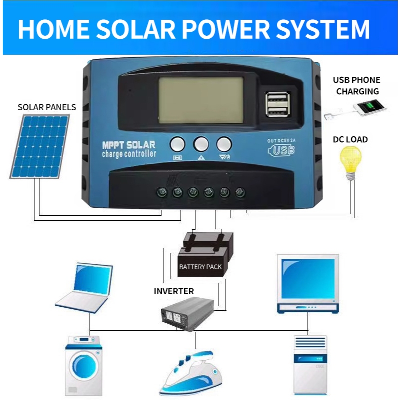 MPPT 30A/50A/100A 12V/24V Auto Focus Tracking Solar Panel Charge Controller Regulator with Dual