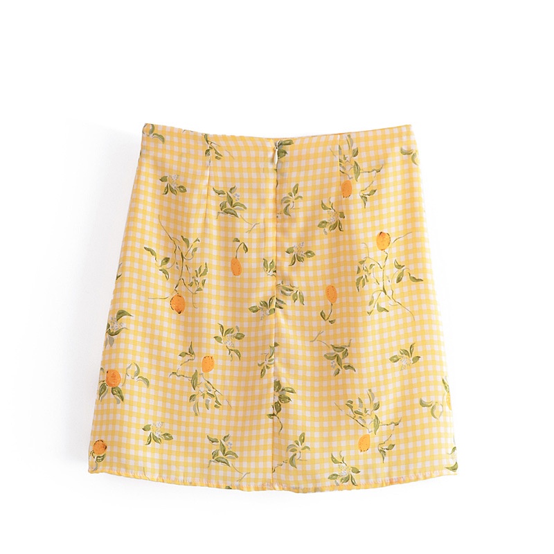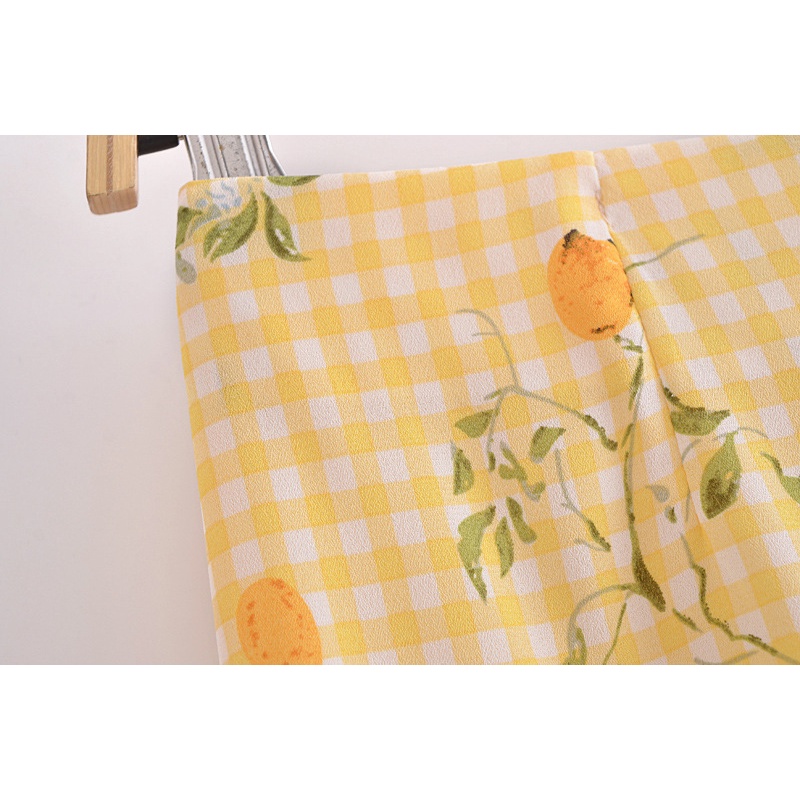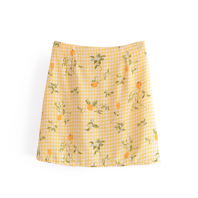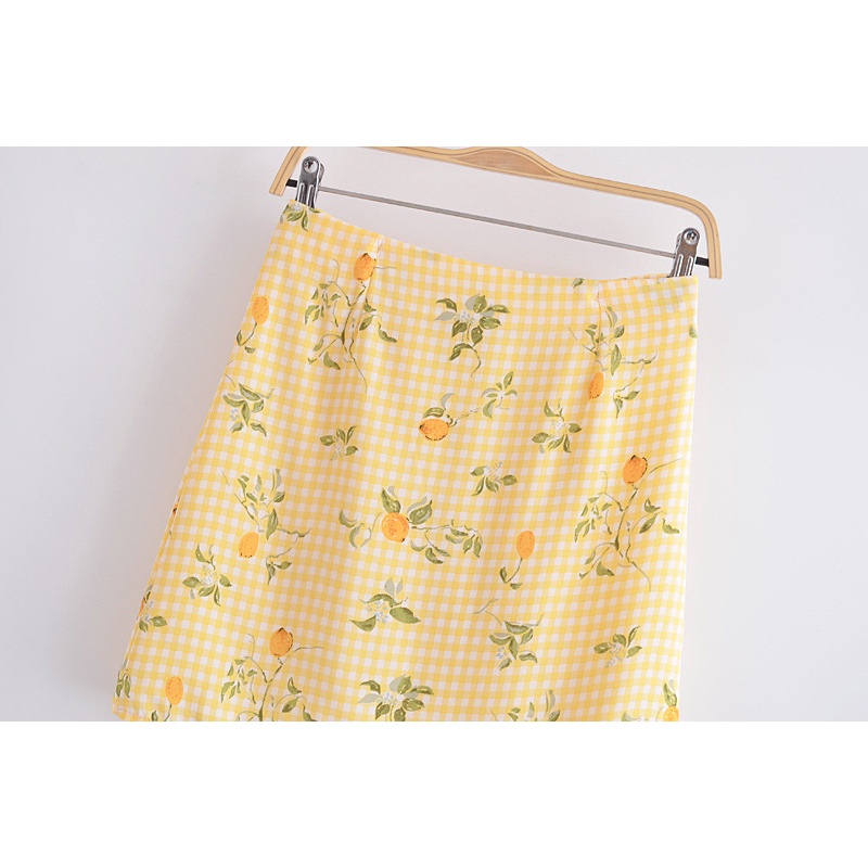 Wholesale Fashion Retro Lattice Printing High Waist Skirt 7206