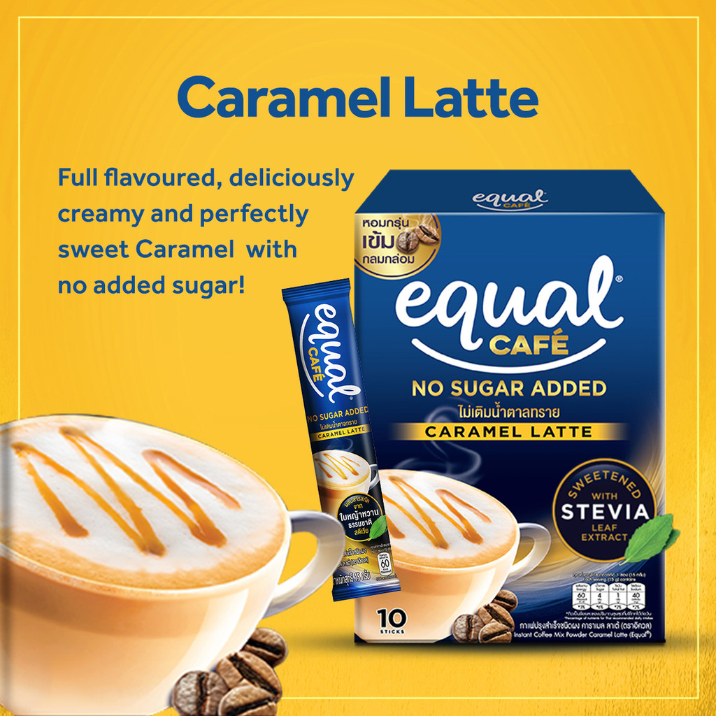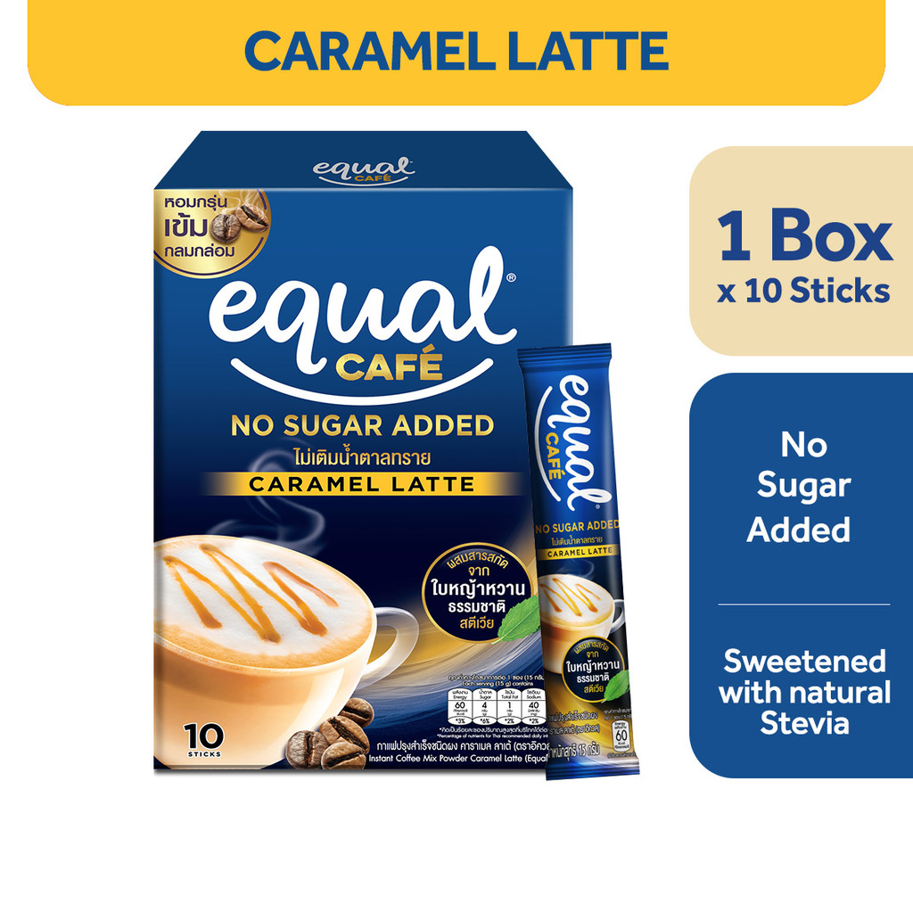 Equal Cafe Caramel Latte, 3-IN-1 Coffee Mix 10 Sticks - 1 Box (Natural Stevia Sweetener)