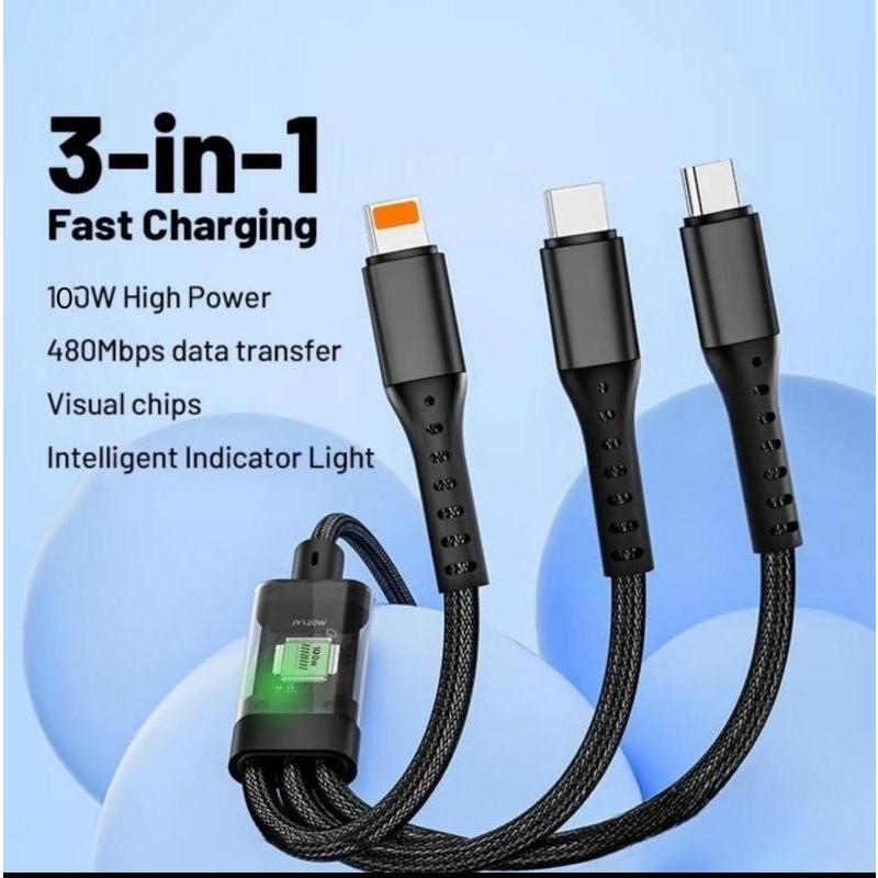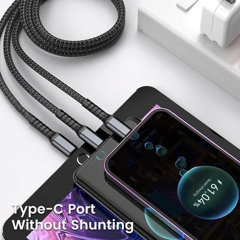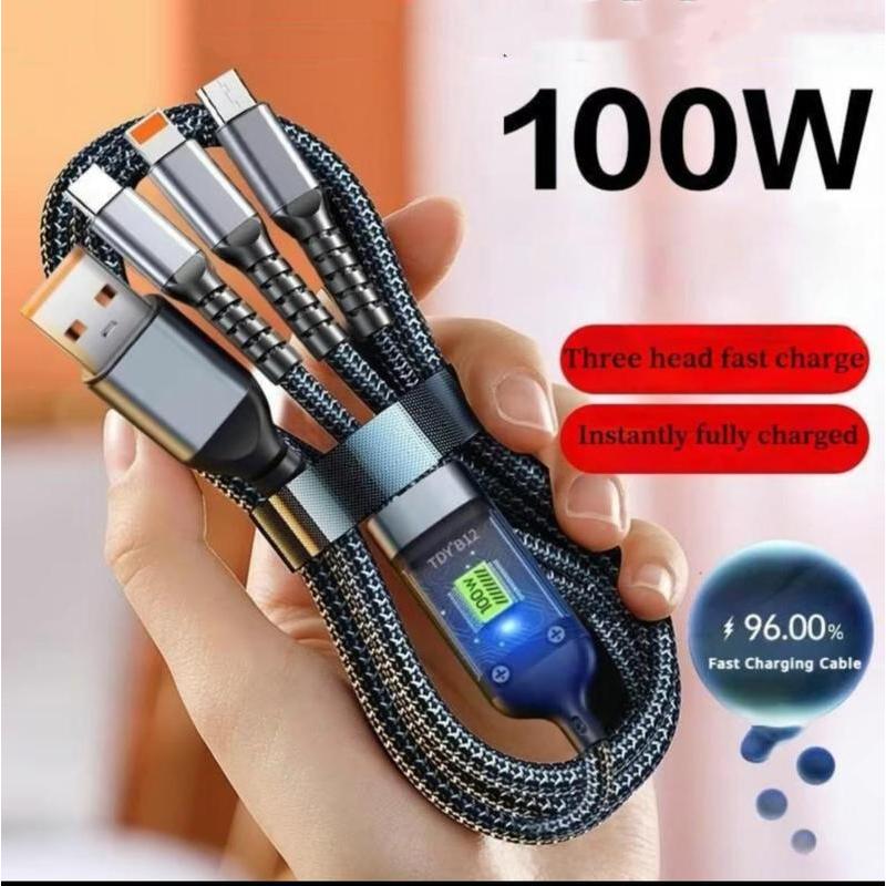 100W 3 in 1 Super Charging Cable 6A Micro USB Type C Fast Charger Type-C Cable Data Cable