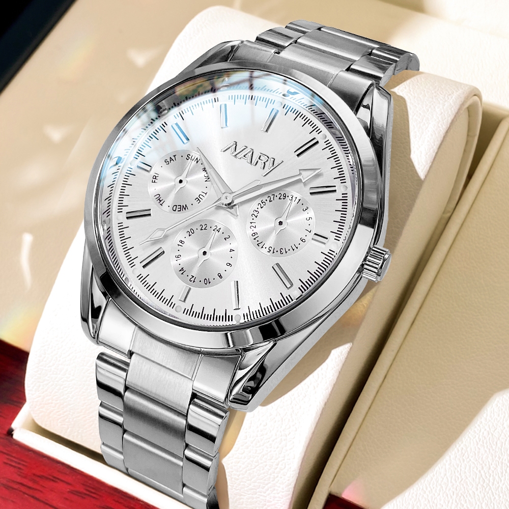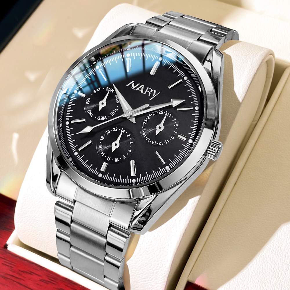 NARY Business Watch For Men Original WaterProof Stainless Steel Quartz Luminous Wristwatch