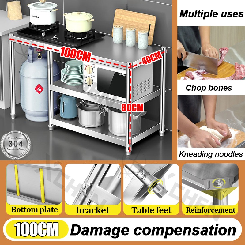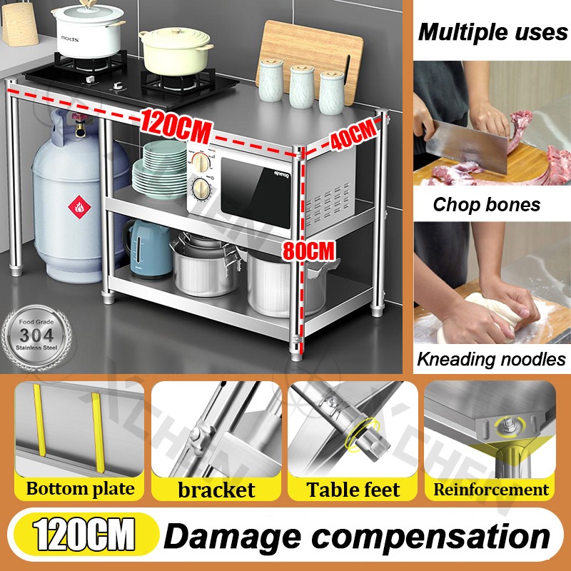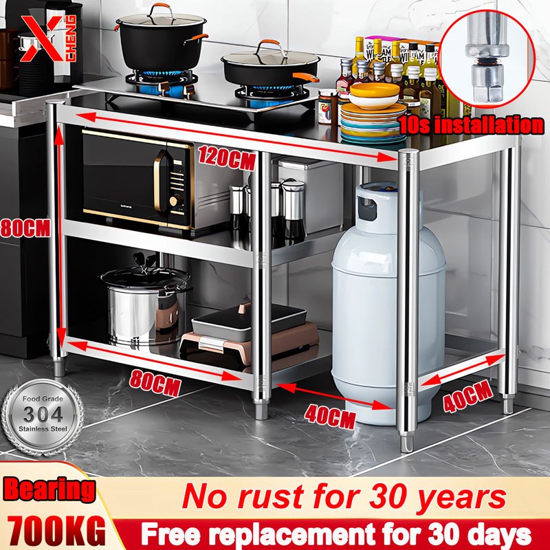 Bearing 700kg Kitchen 304 stainless steel shelf console floor-to-ceiling gas stove stand rack