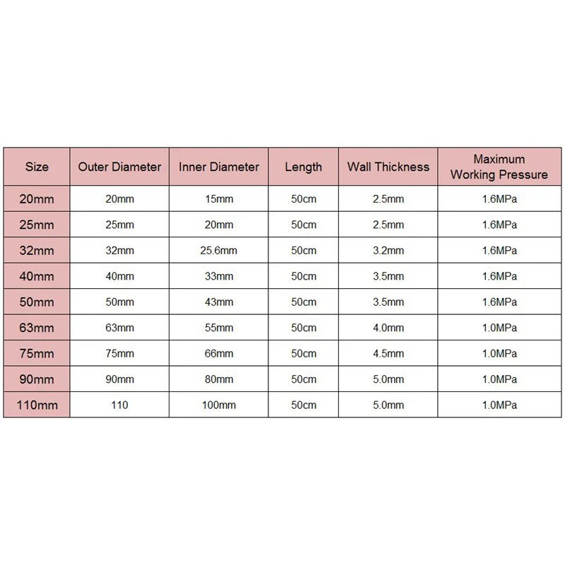 20-50mm Transparent PVC-U Pipe 50cm Length for Garden Irrigation, Fish Tank Aquarium, Water Drainage System Fitting