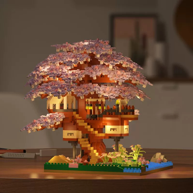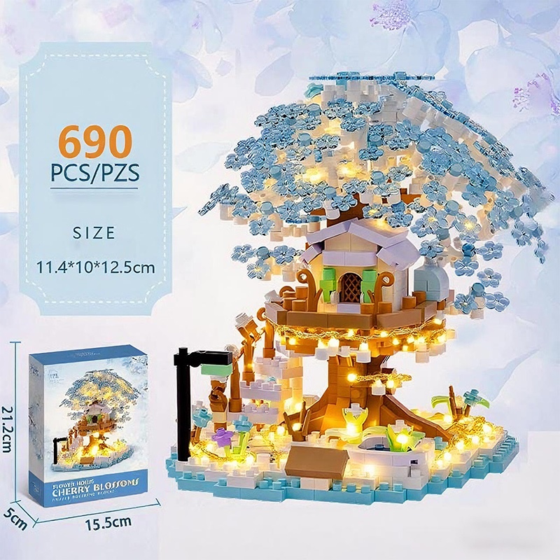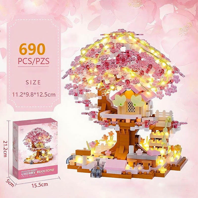 Sakura Tree House Bricks Set Small Particle Building Blocks Flowers Toys Gift for Girlfriend