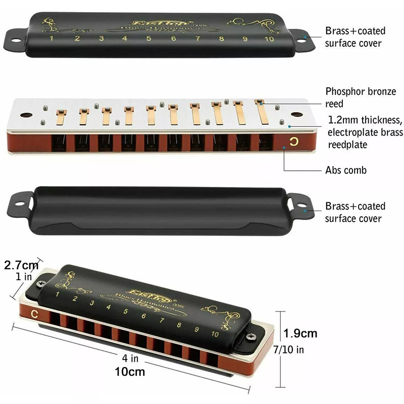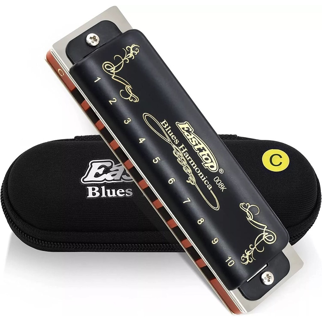 EASTTOP T008K Diatonic Blues Harmonica 10 Hole 20 Tones Harp Mouth Organ Key of C /G with Case
