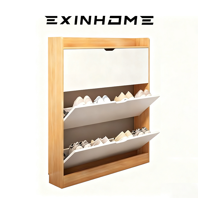 EXINHOME 3 Door Shoe Cabinet Shoe Rack Shoe Cabinet Wooden Shoe Rack(80x24x115cm)