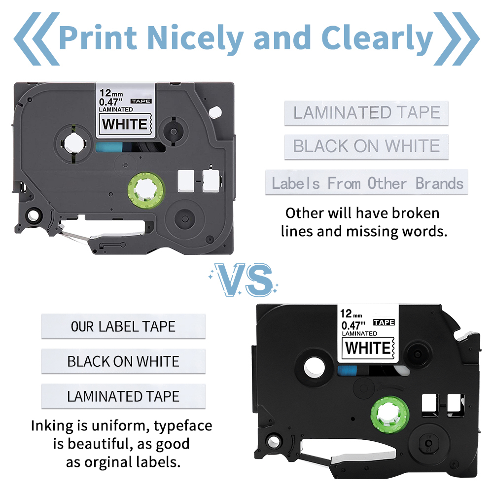 Compatible For Brother 6/9/12/18/24mm TZe Tape TZe231 TZe221 TZe211 for Brother P-Touch Tape Laminated Label Tape Strong Adhesive Refill Tape for Brother Label Maker