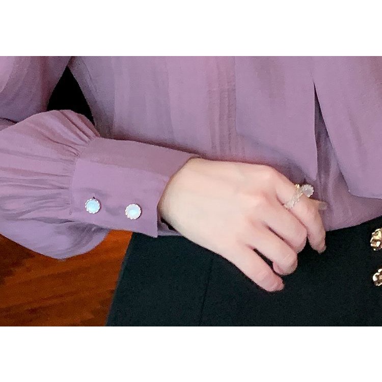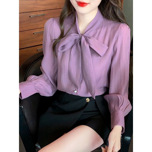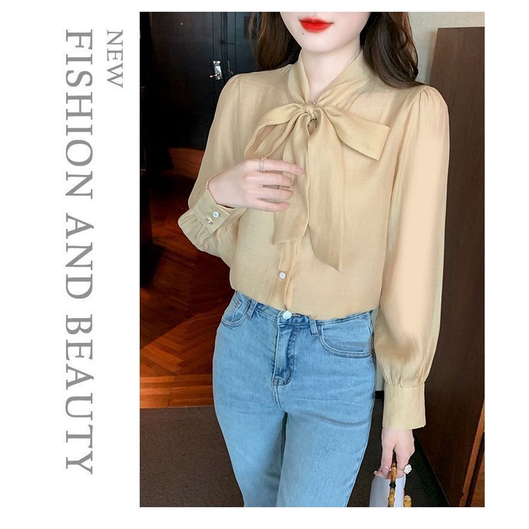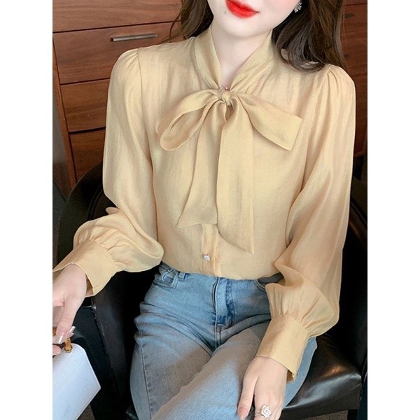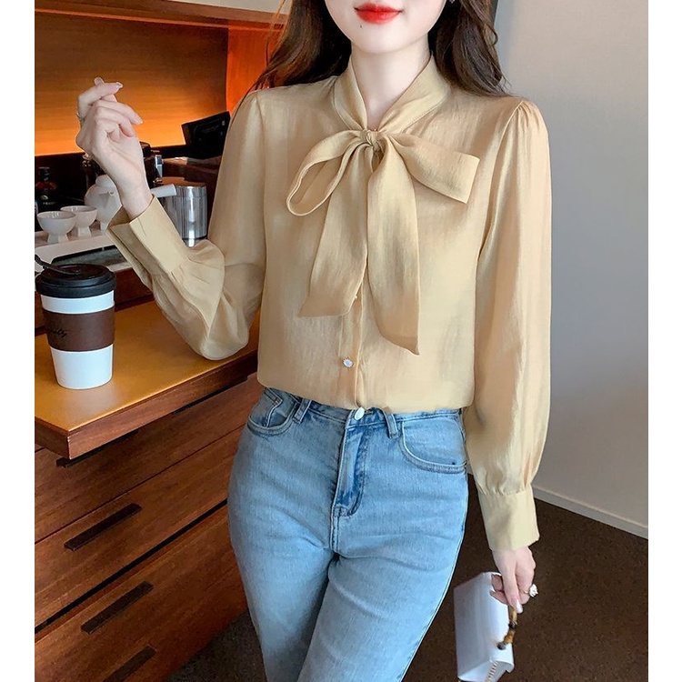 Women's Blouse Korean Style Chiffon Blouse Bow Long Sleeve Shirt for Women