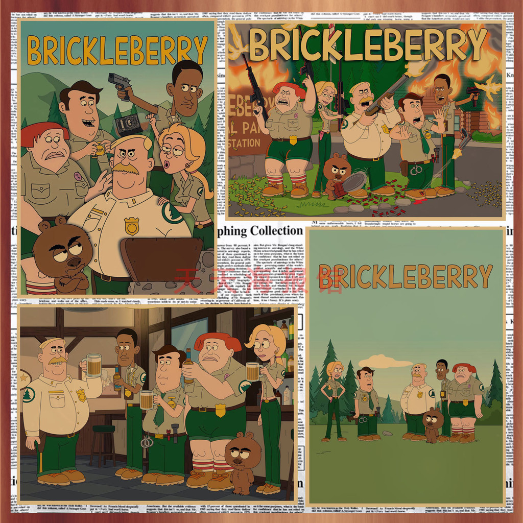 Crispy Berry Park Brickleberry Poster Cartoon Anime Retro Kraft Paper Decorative Wall Painting Mural