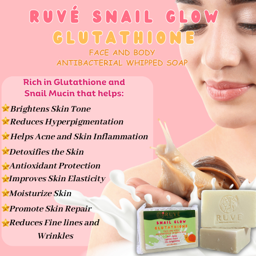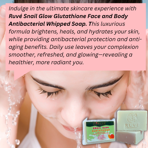 Ruvé Snail Glow Glutathione Face and Body Antibacterial Whipped Soap, 135g