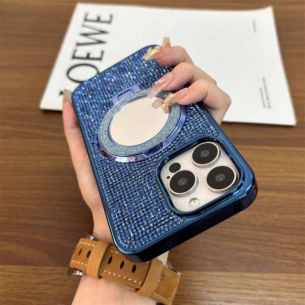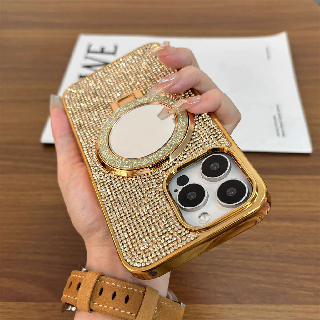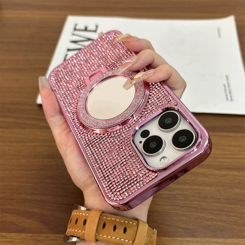 Aesthetic diamond phone case for iphone 15 16 pro max case iphone 12 13 pro max case iphone 11 14 pro max plus case luxury mirror bracket electroplated shockproof back cover