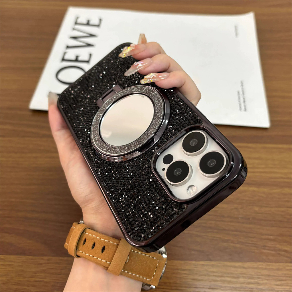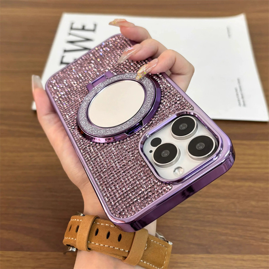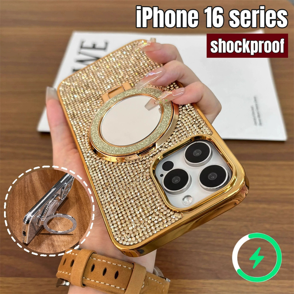 Aesthetic diamond phone case for iphone 15 16 pro max case iphone 12 13 pro max case iphone 11 14 pro max plus case luxury mirror bracket electroplated shockproof back cover