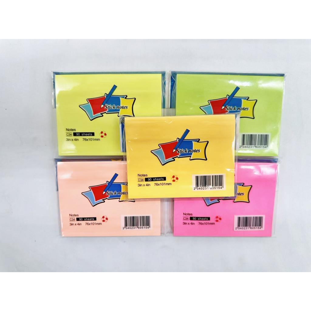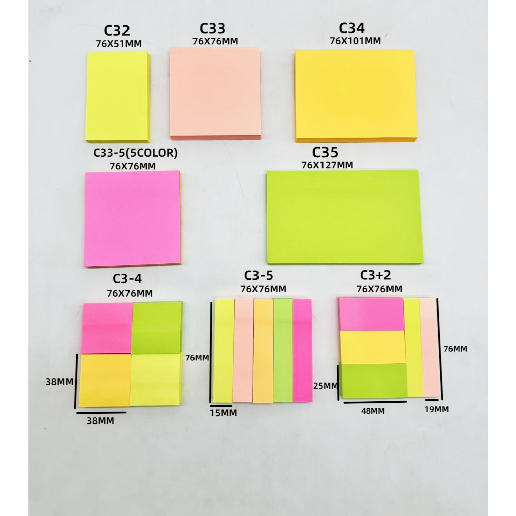 Fluorescent Self-Adhesive stick Notes 2x3, 3x3, 3x4, 3x5 inches / 90 sheets / School Supplies