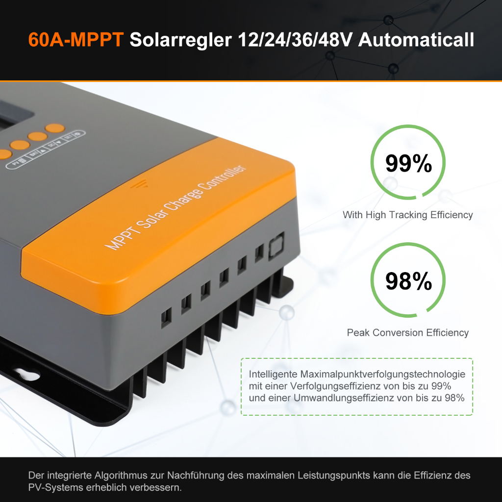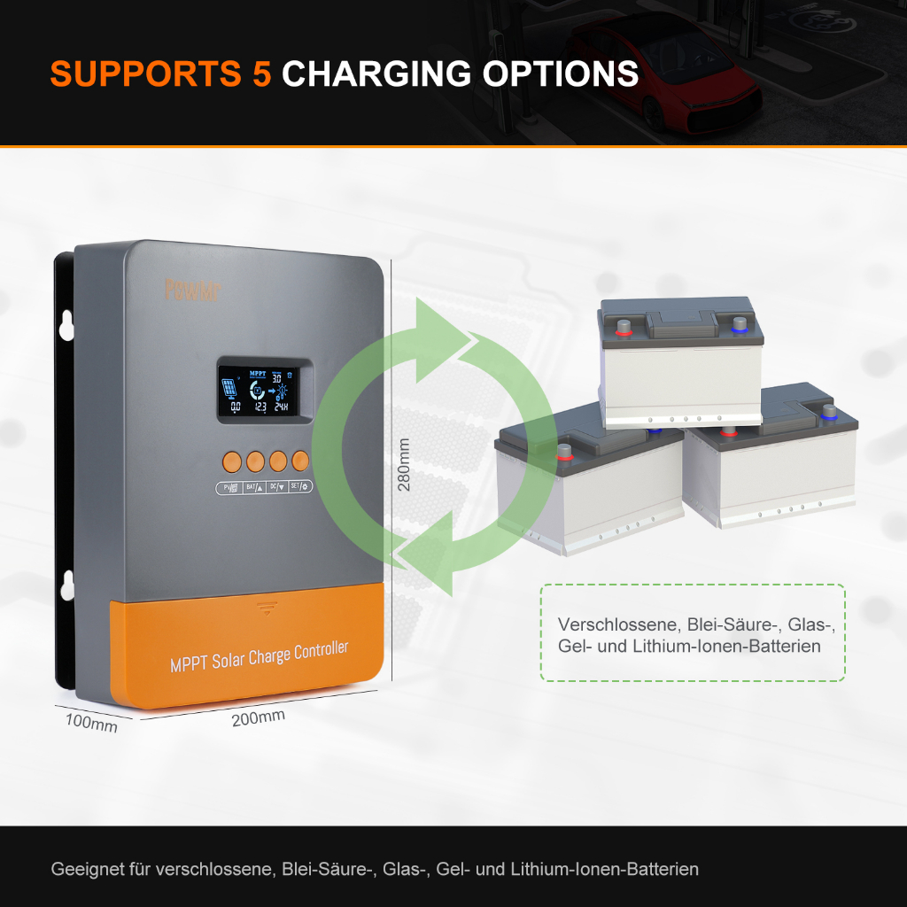 PowMr MPPT 60A Solar Charger Controller 12V 24V 36V 48V With Blacklight LCD Regulator Max PV Input 160VDC Support Lithium Battery POW-M60-PRO