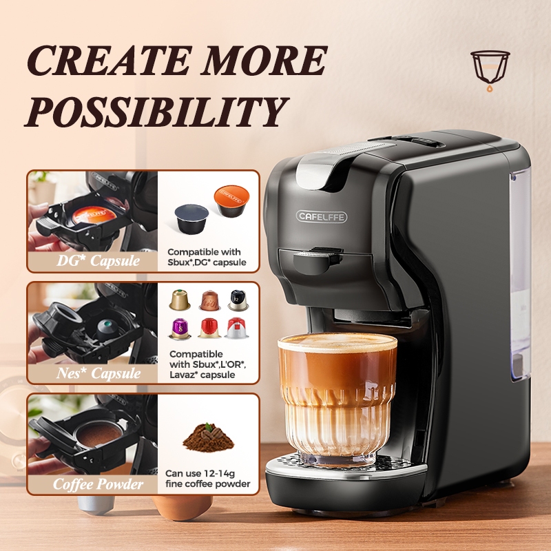Cafelffe 3 In 1 Coffee Maker For Nespresso/Dolce Gusto Capsules/Coffee Powder, Cold/Hot Brew Black