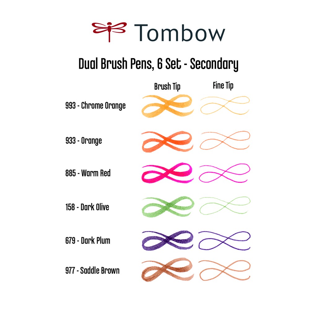 Tombow ABT Dual Brush Pen 6-Pack, Secondary