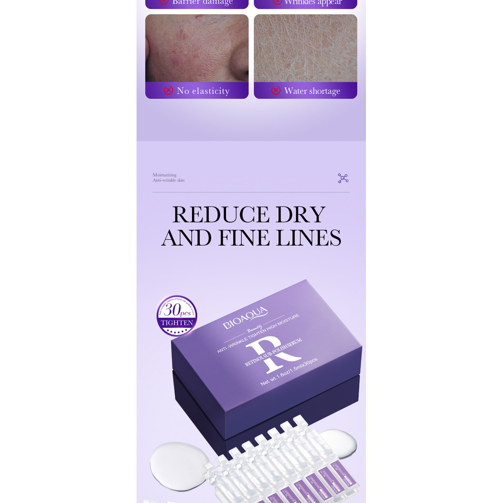 1 Box 30 Pieces All English Retinol Anti-Wrinkle Serum BIOAOUA Firming Moisturizing Polishing Serum