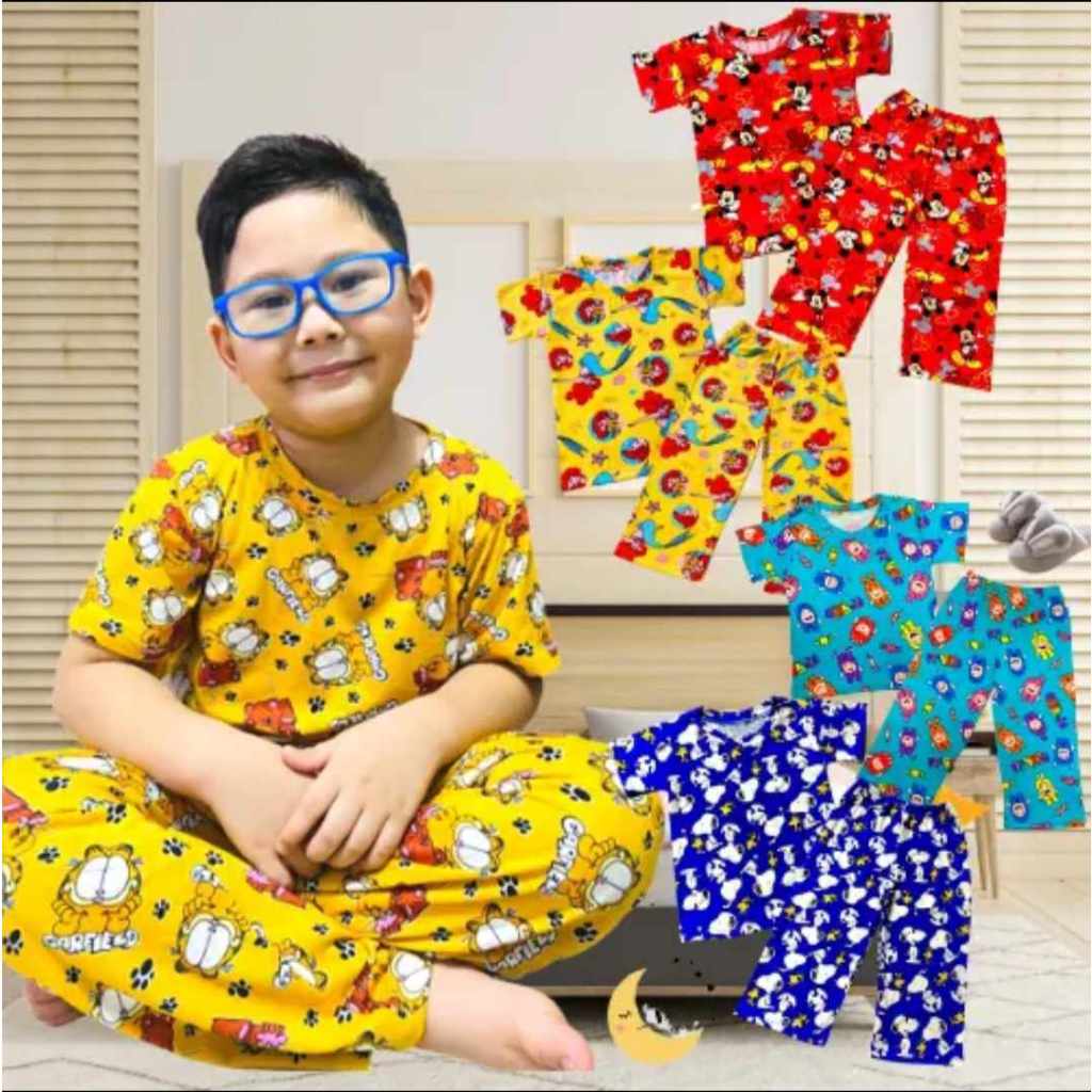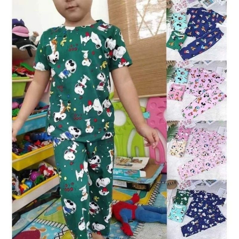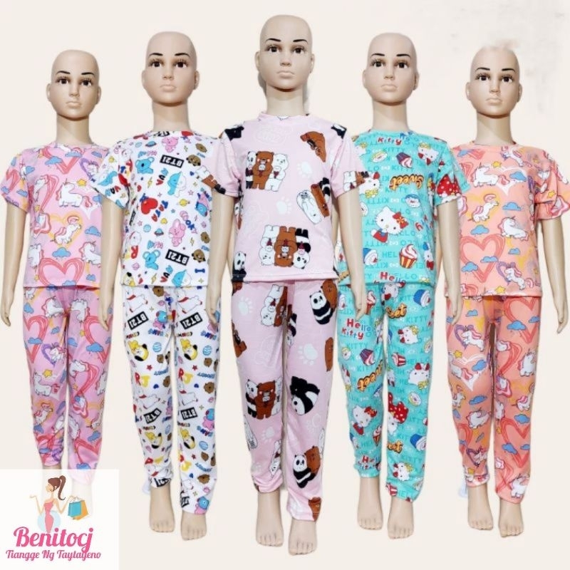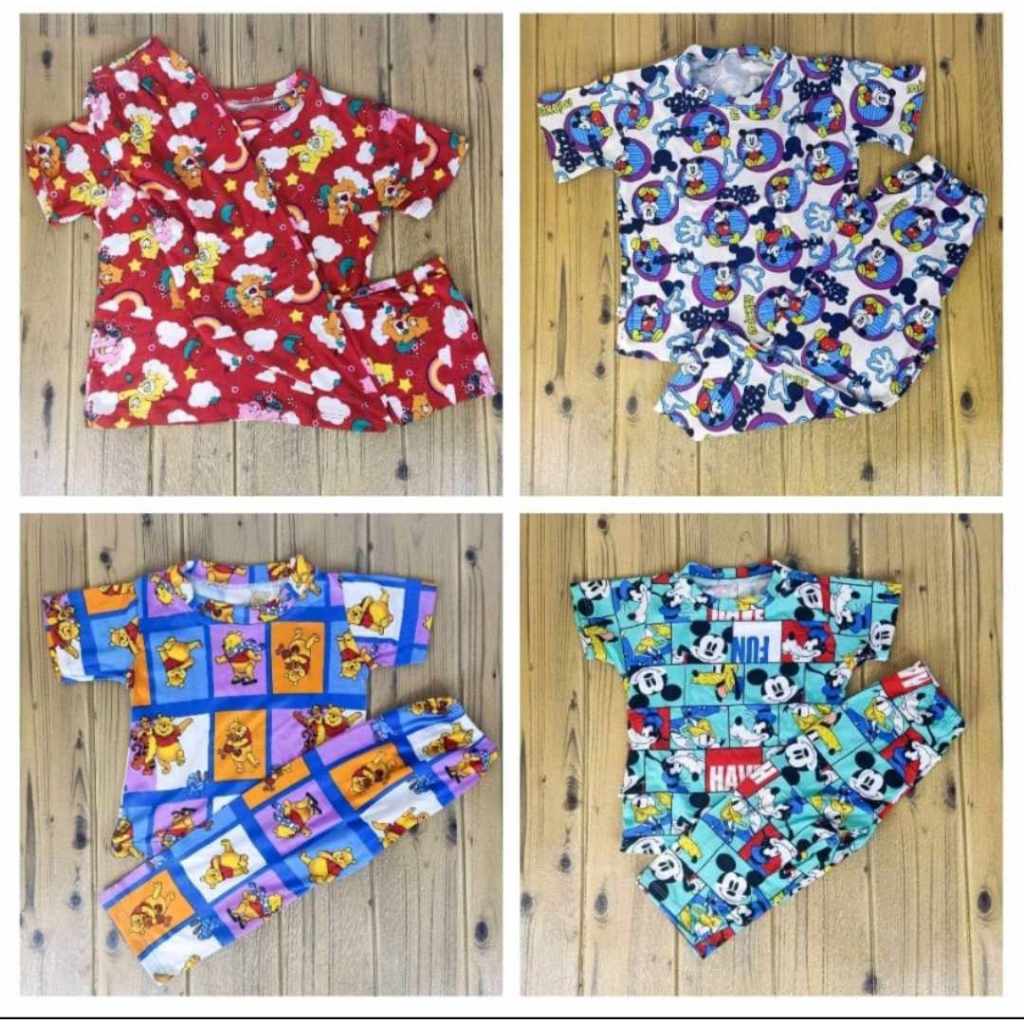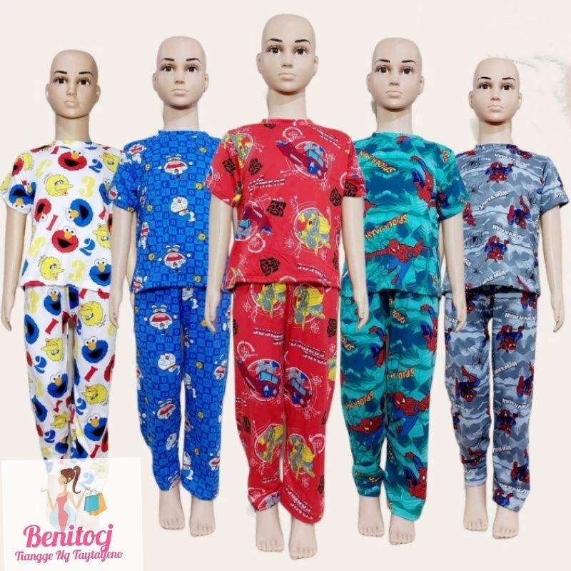 Cotton Spandex Comfortable Sleepwear T-shirt Pajama Terno Daily Outdoor Wear For Boy & Girl Cartoon.