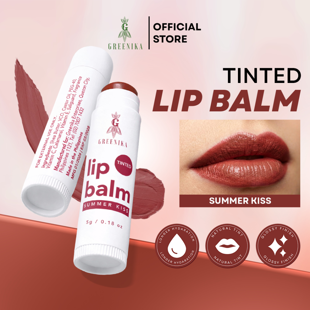 [ VITAMIN LIP BALM - SUMMER KISS ] Greenika Glints Tinted Lip Balm for Natural Shades Plumper Lips