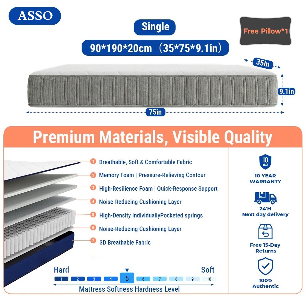 8.1inch Memory Foam Spring Mattress Ergonomic Mattress Medium Firm Foam Bed 10 Years Warranty