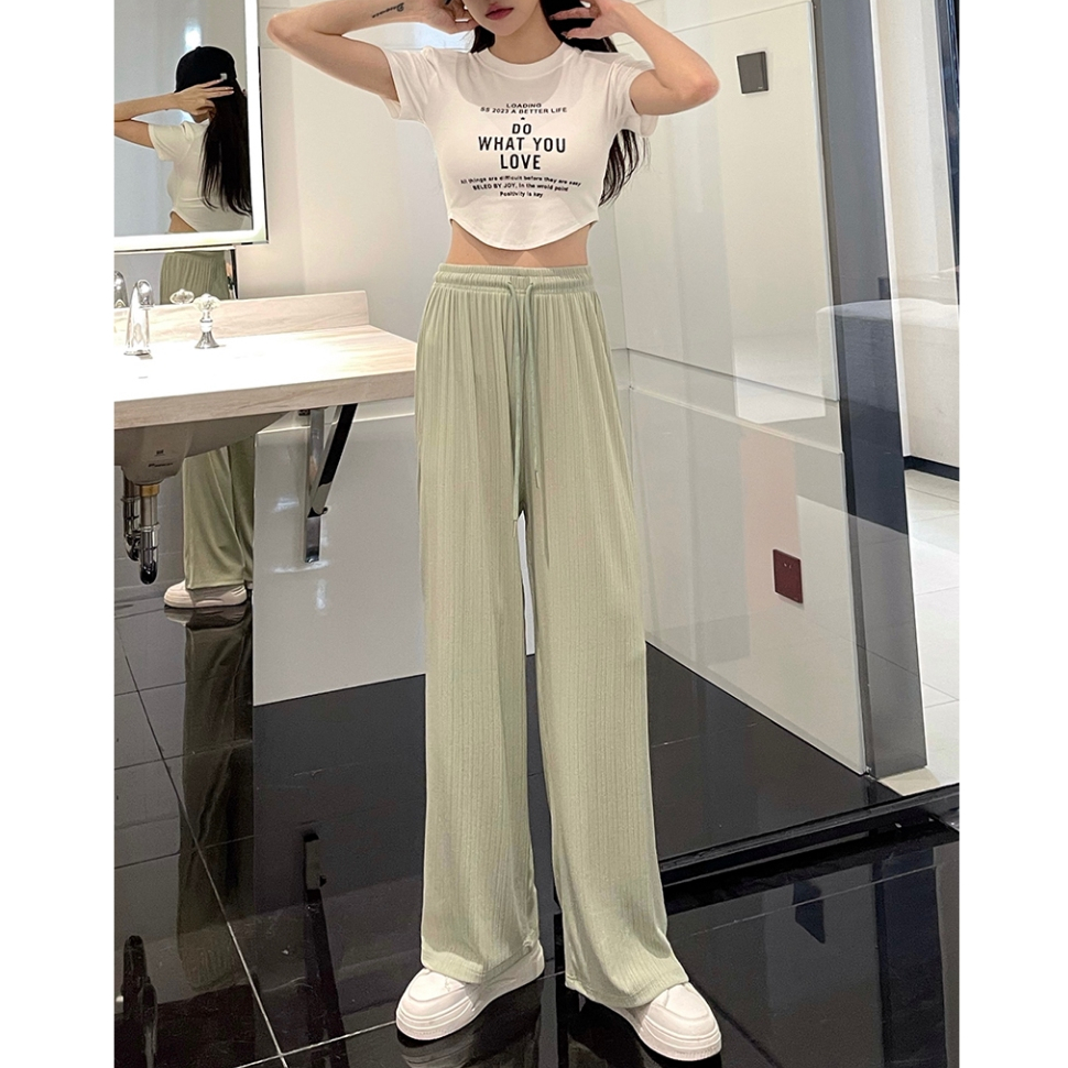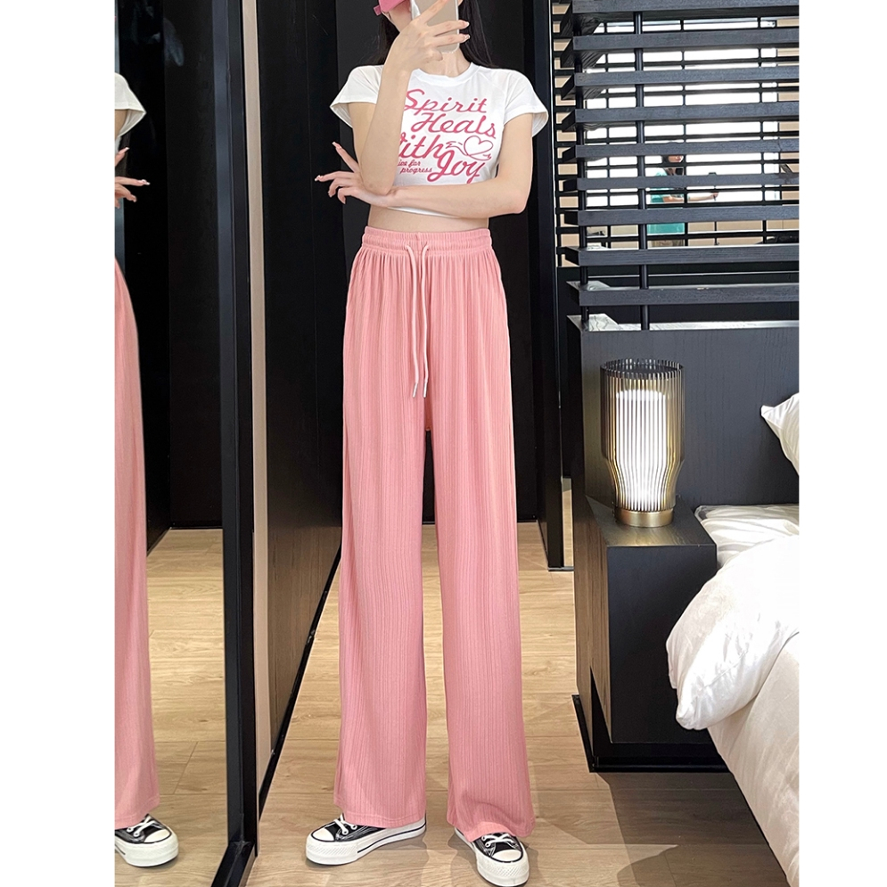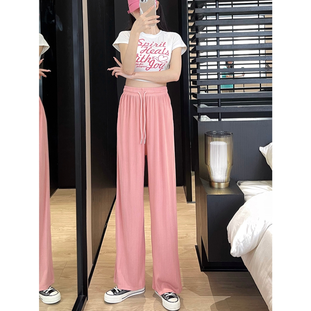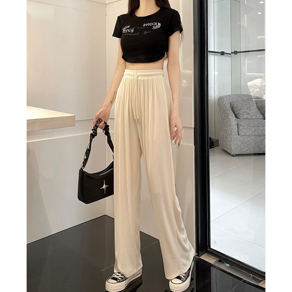 【Ready Stock】23-43 Plus Size Ice silk Pants korean outfit full length Pants For Women High Waist kinwoo trouser pantalon For Women