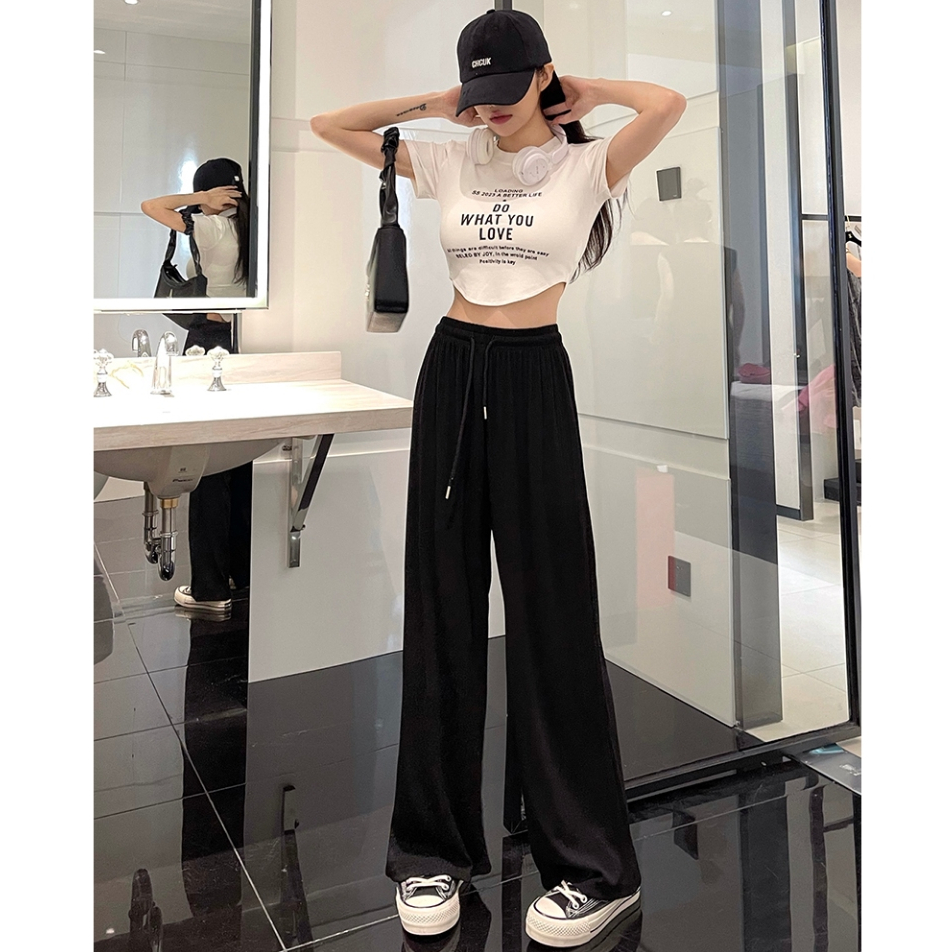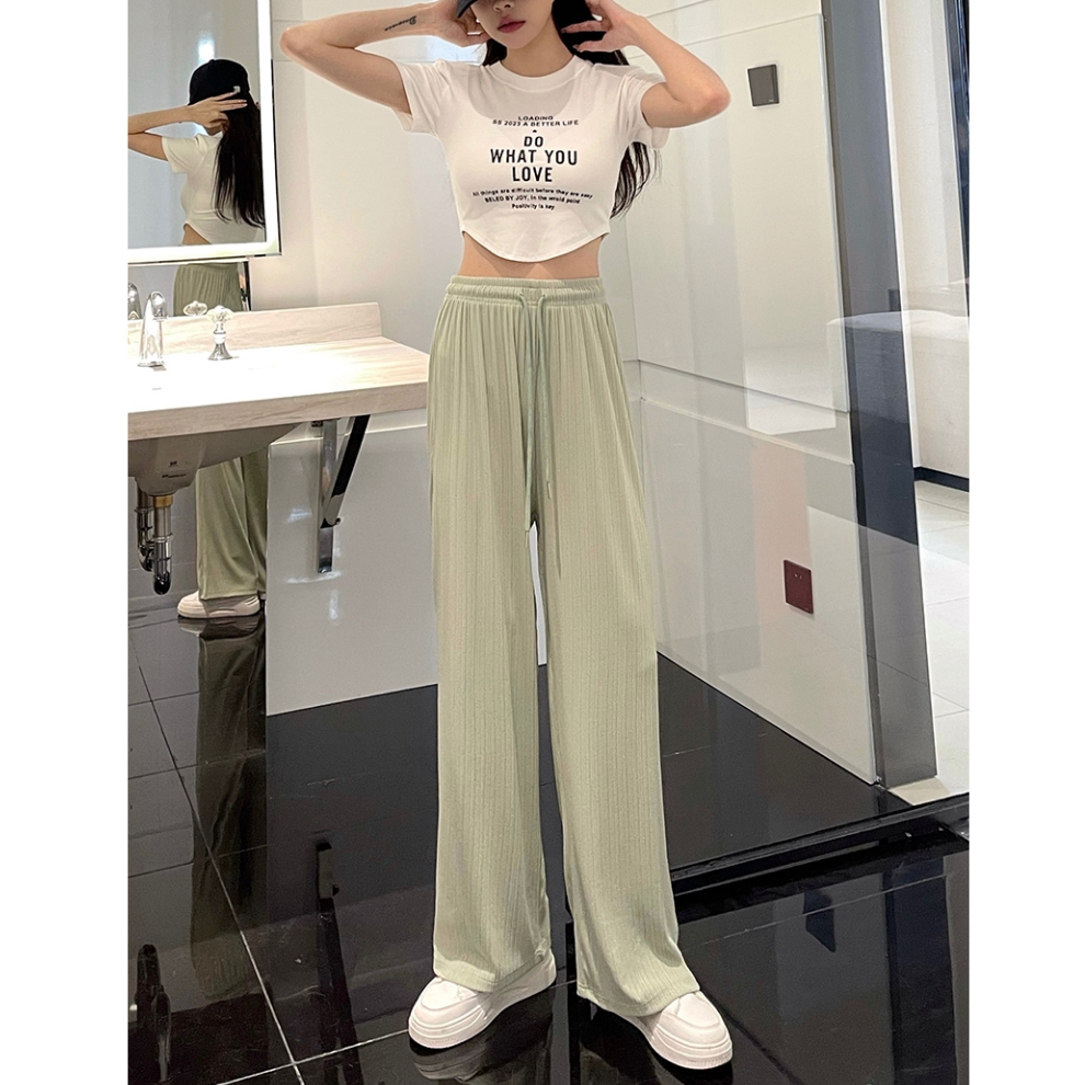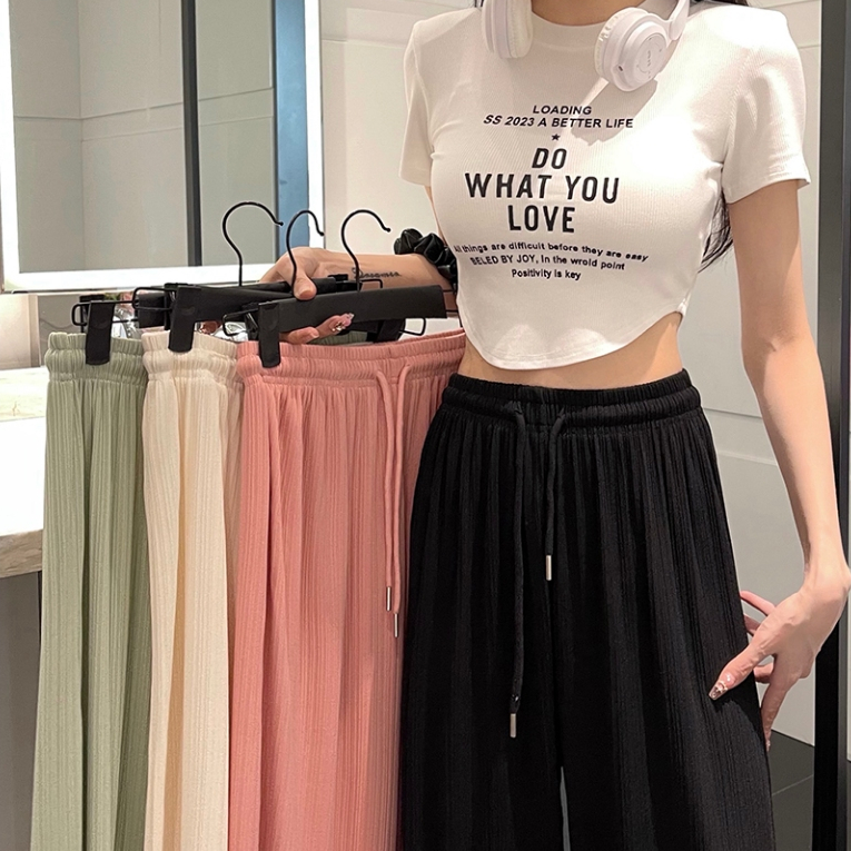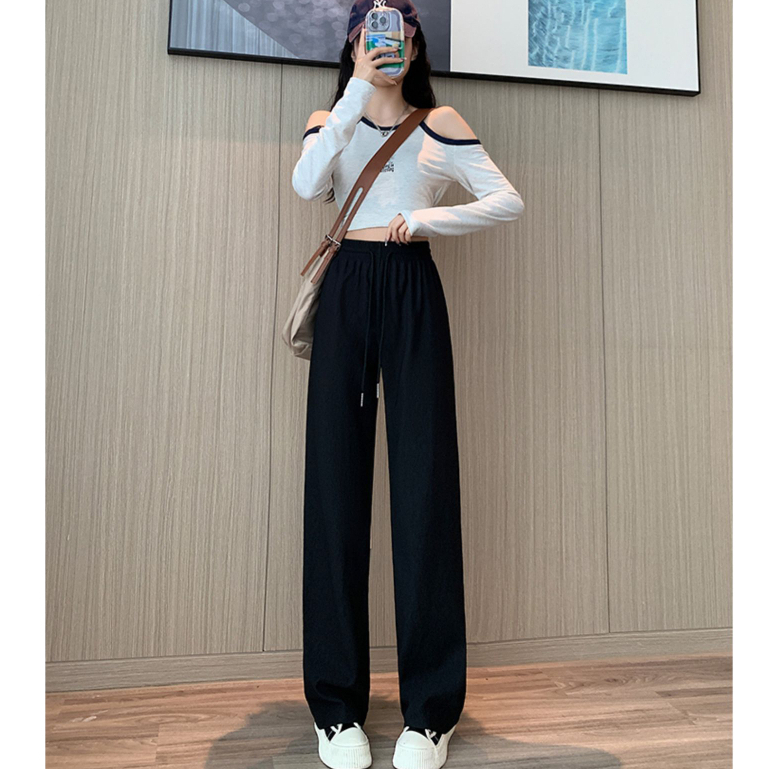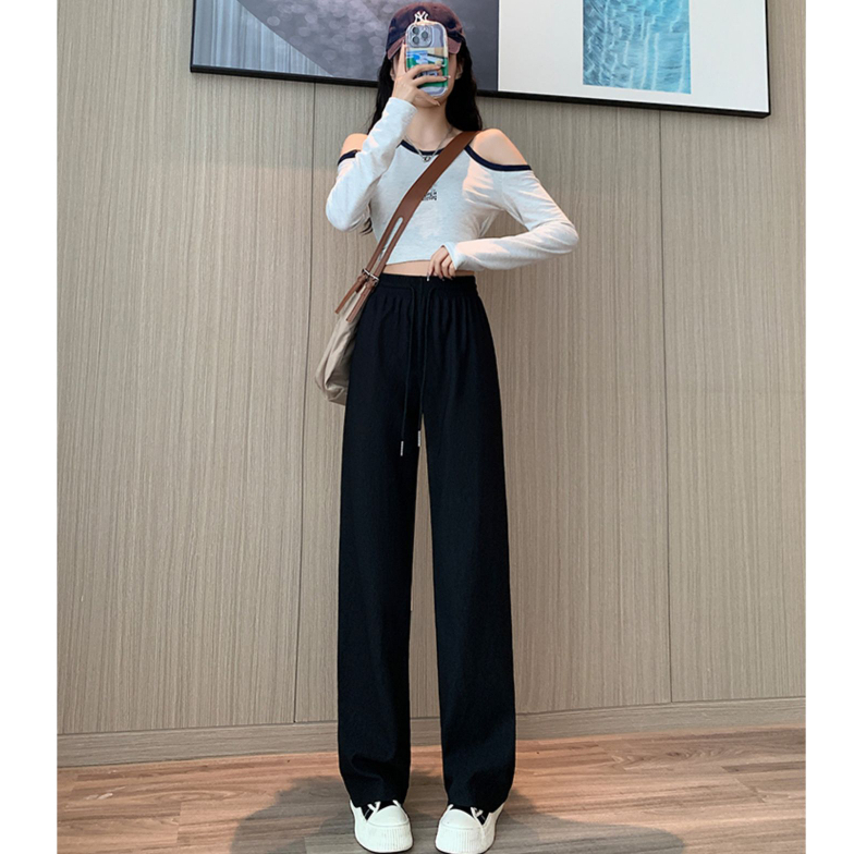 【Ready Stock】23-43 Plus Size Ice silk Pants korean outfit full length Pants For Women High Waist kinwoo trouser pantalon For Women