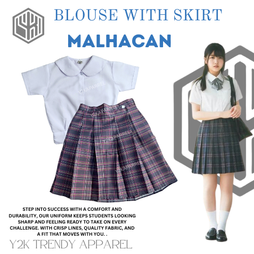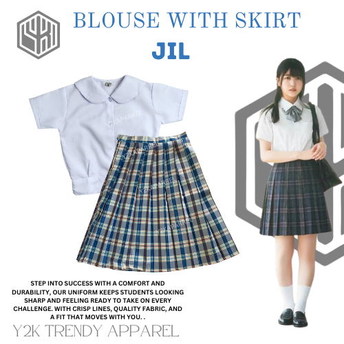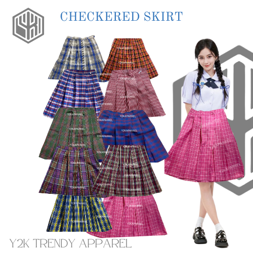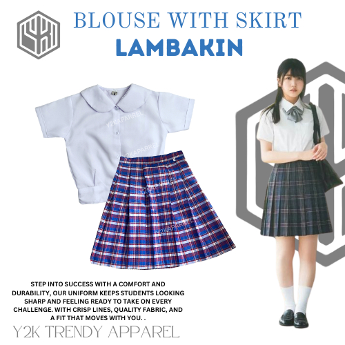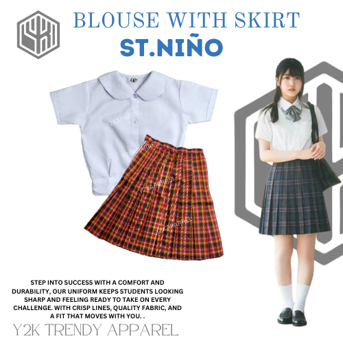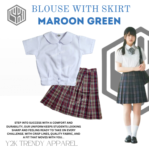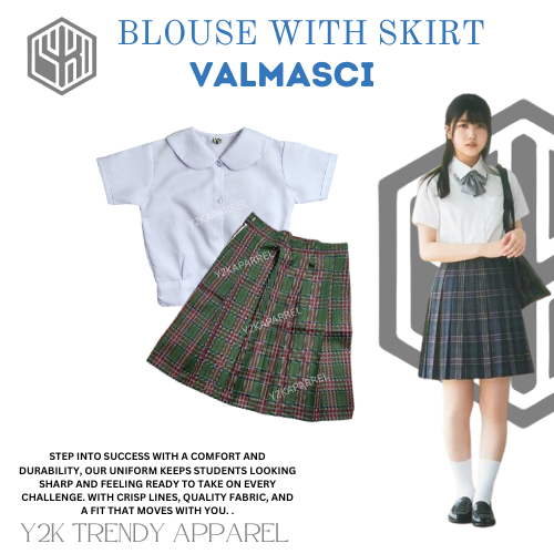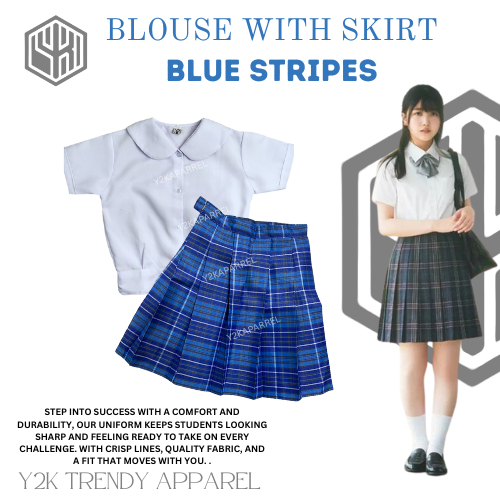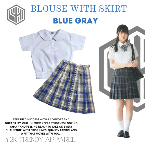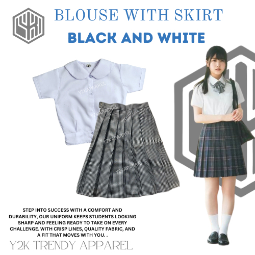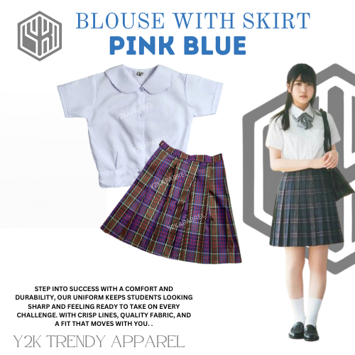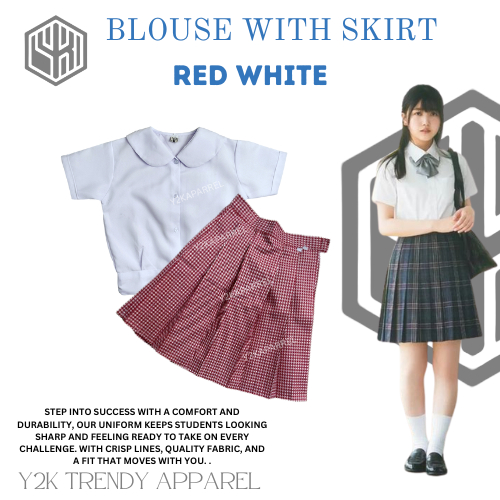 1Y2k School Uniform Skirt Set of Deped Blouse with Skirt Uniform Checkered
