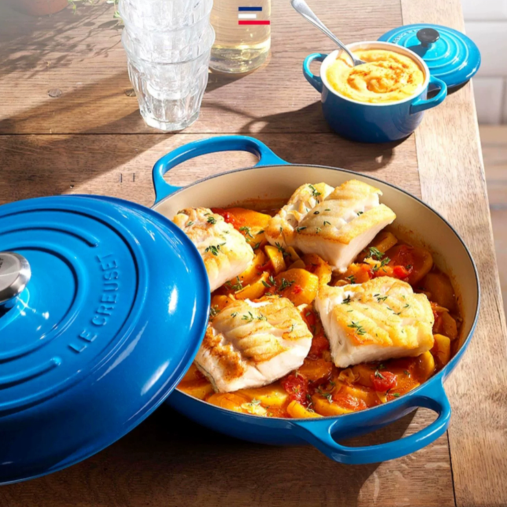 France LE CREUSET white enamel cast iron pot 26cm seafood pot