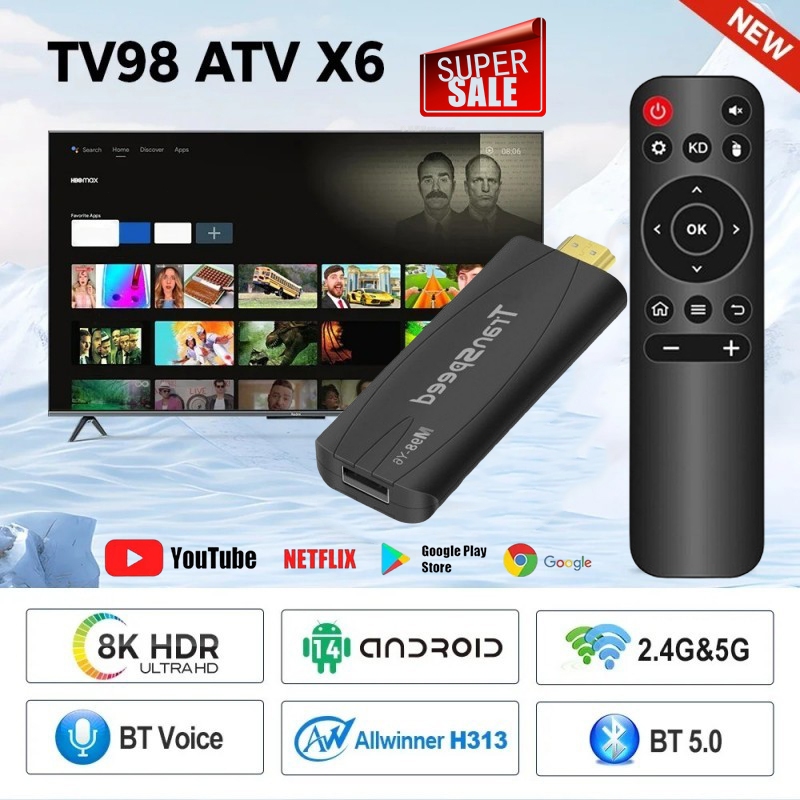 Android Smart TV Stick 8K HD 2.4G 5G Dual Wifi TV Plus Box Complet Set For Google YouTube NETFLIX