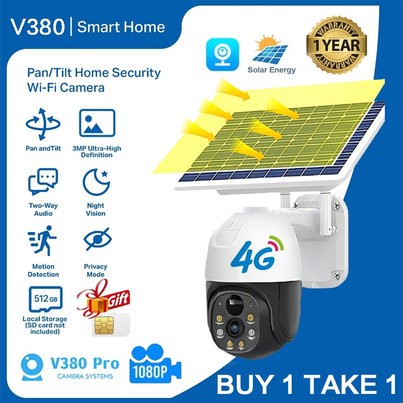 V380 PRO 4G SIM Card Outdoor Solar CCTV Camera NO WIFI NEEDED Wireless Waterproof Night Vision Alarm