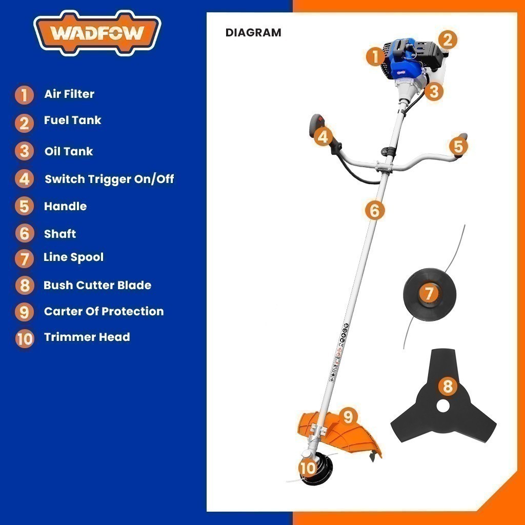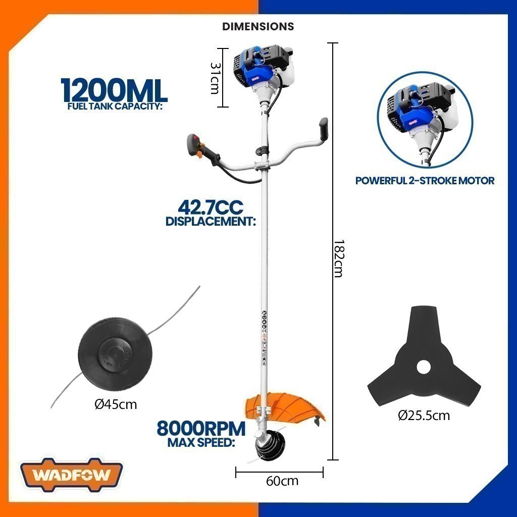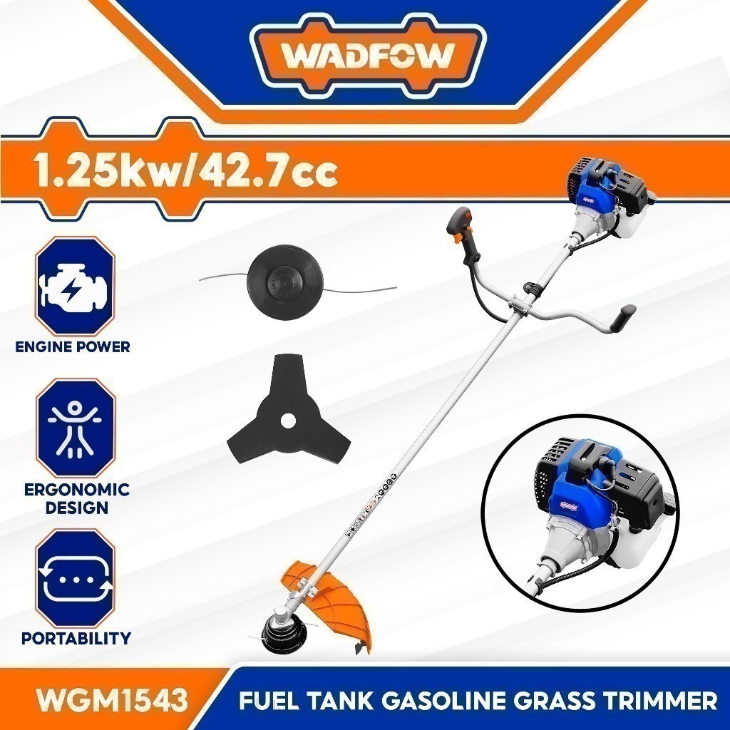 Wadfow 1200ml Fuel tank Gasoline Grass Trimmer & Brush Cutter 42.7cc/1.25Kw (2HP) WGM1543 (WPT)