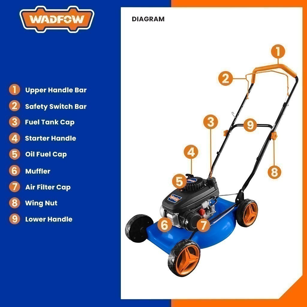 Wadfow 4.0HP Gasoline Garden Lawn Mower 3.0KW 4-Stroke Engine, Hand Push Type WGM2A18 (WPT)