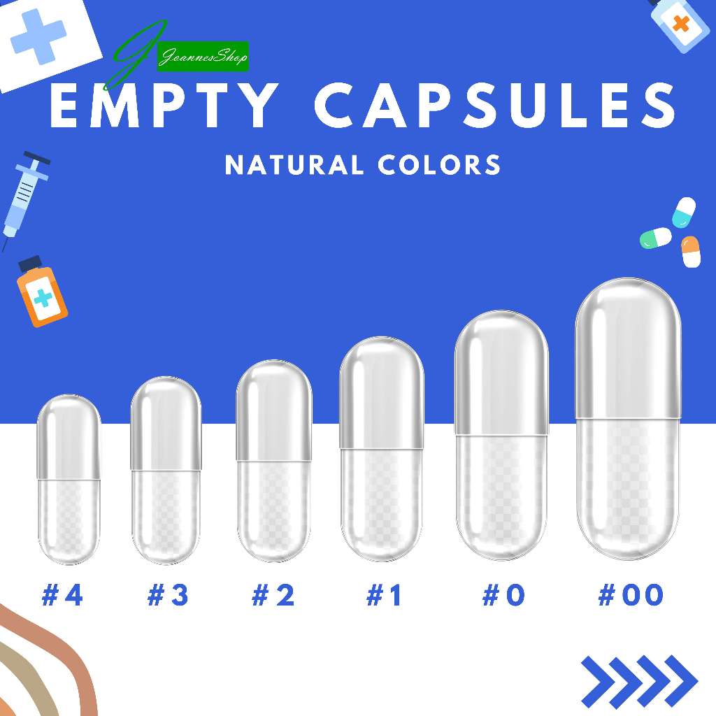 [100 PCS.] Empty Capsules natural colors in four sizes #00, #0, #1, #2, #3, #4