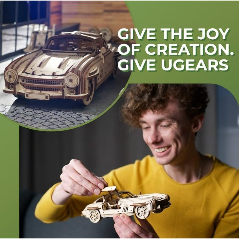 Ugears Winged Sports Coupe Wooden Blocks DIY Puzzle Assembly Imagination Creativity Toy Educational Wooden Puzzle 3D Craft Kit Wooden Model Kit