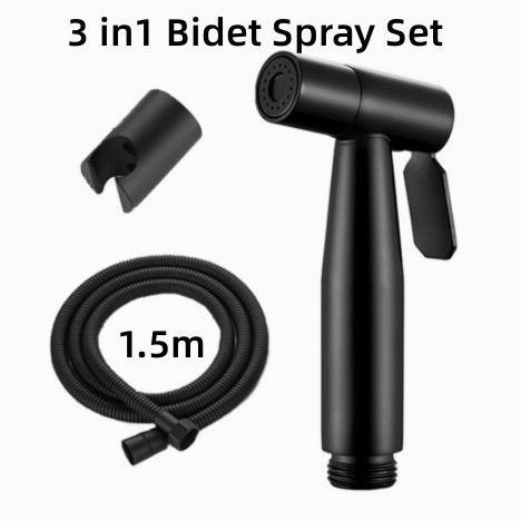 New 3 in 1 Black Toilet Bidet Sprayer Set with Holder and 1.5m Hose