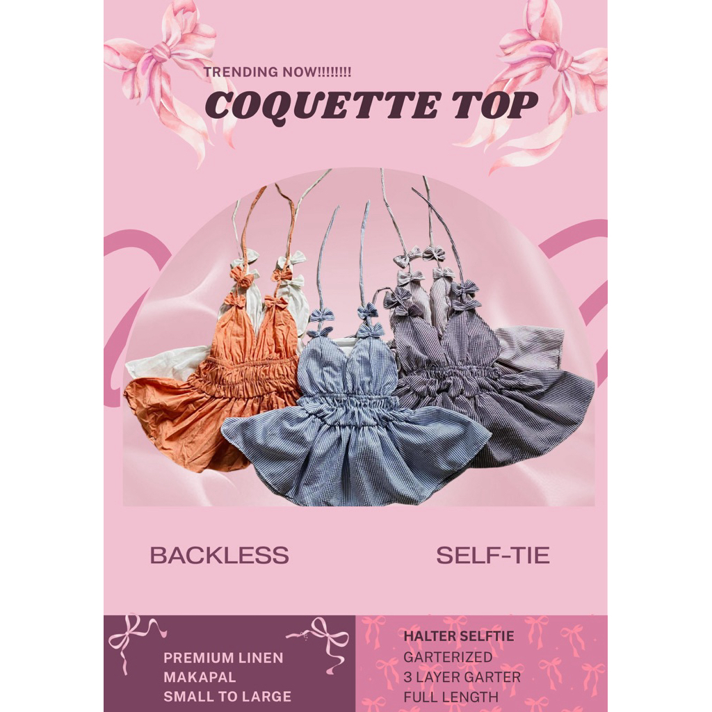 Coquette Ribbon Top Backless Smocking Self tie Premium Linen Fabric
