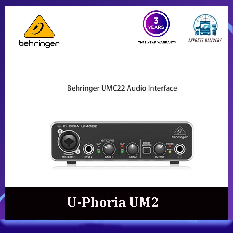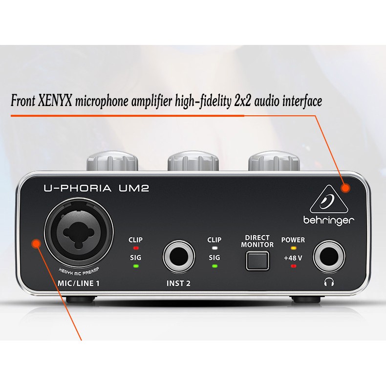 Behringer U-Phoria UM2 / UMC22 /UMC 404HD USB audio interface preamplifier sound card with 48V microphone phantom power