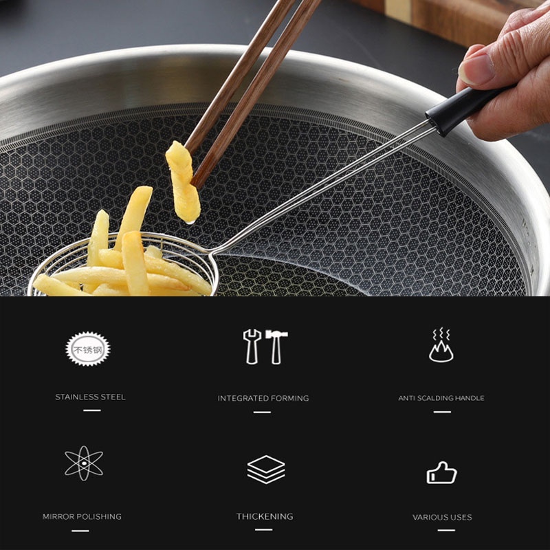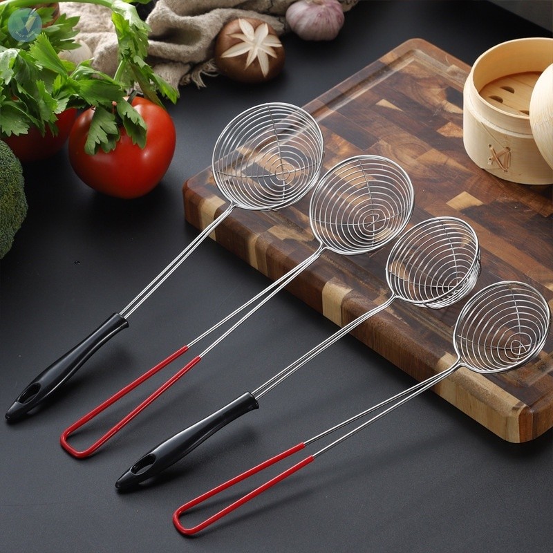 Stainless Steel Spoon Non Slip Hot Pot Colander Noodle Scoop Milk Tea Tapioca Scoop Boba Strainer