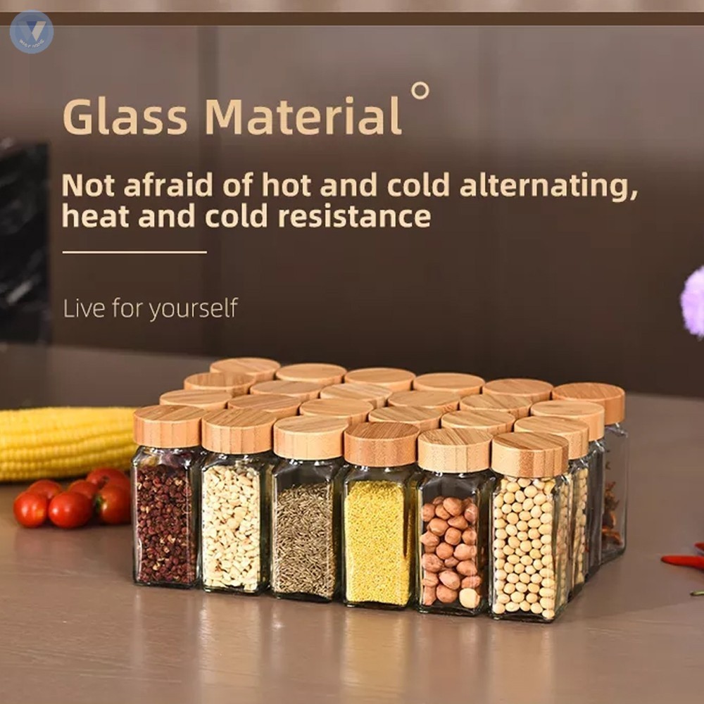 Herbs Spices and Seasonings Square Containers Seasoning Glass Spice Storage with Bamboo Cover (4oz)