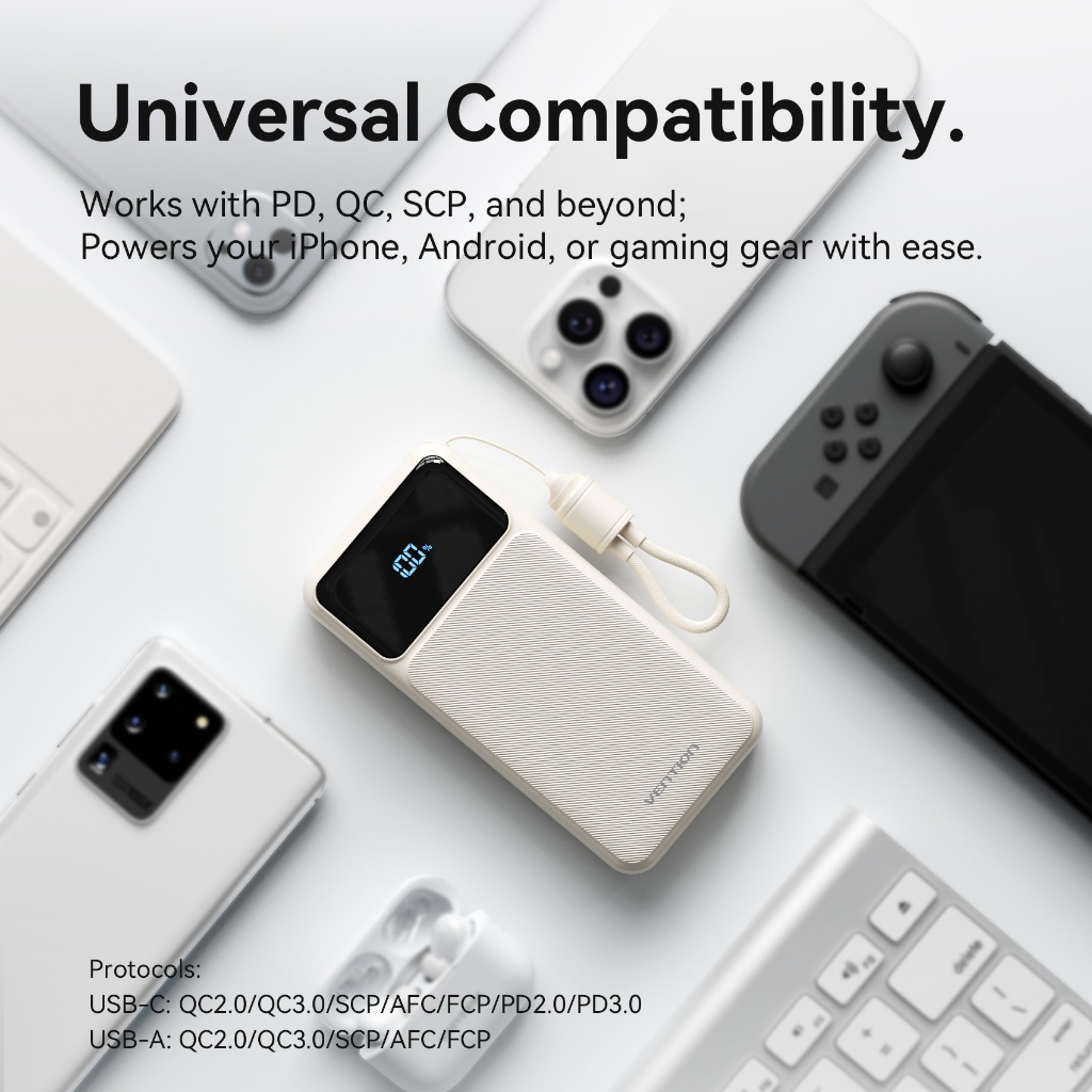 【CCC】Vention 22.5W Power Bank 10000mAh Digital Display Portable Powerbank with Built-in Cable for Phones/Tablets/Bluetooth Earphones
