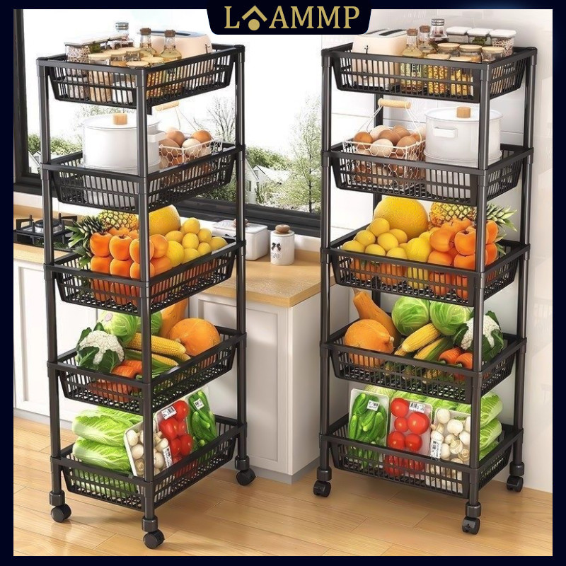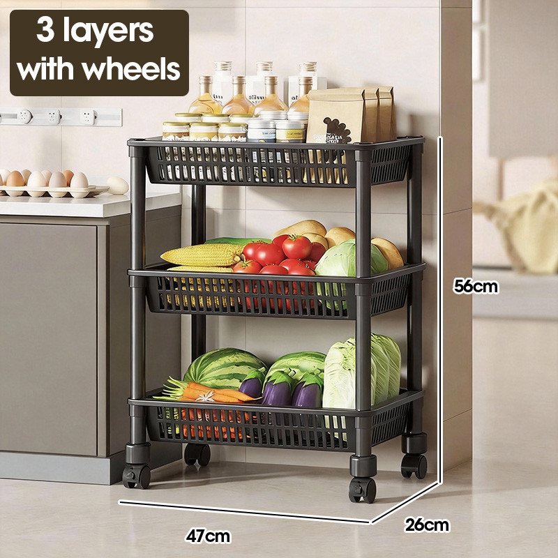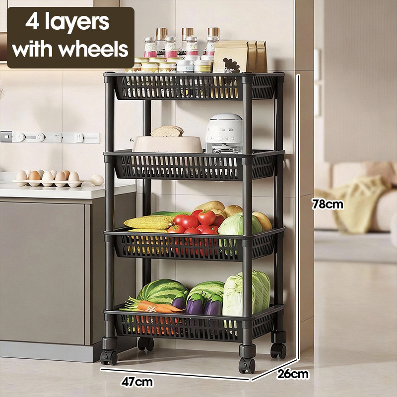 Mobile 4/5-Layer Kitchen Storage Rack Rolling Organizer Trolley Fruit Vegetable Basket Hollow Design
