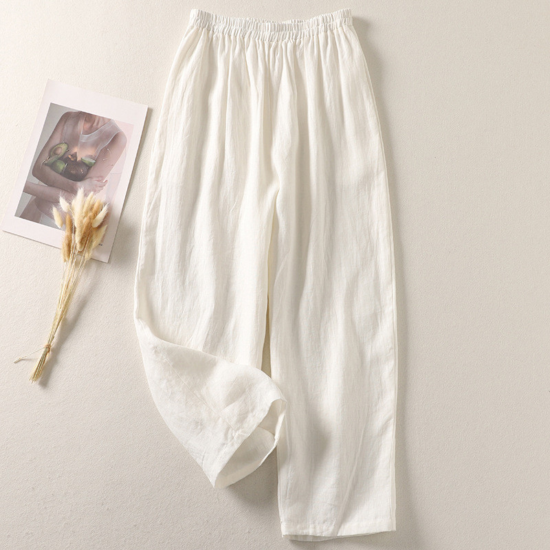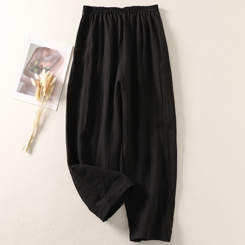2024 New Cotton and Linen Casual Elastic Waist Loose Cropped Pants